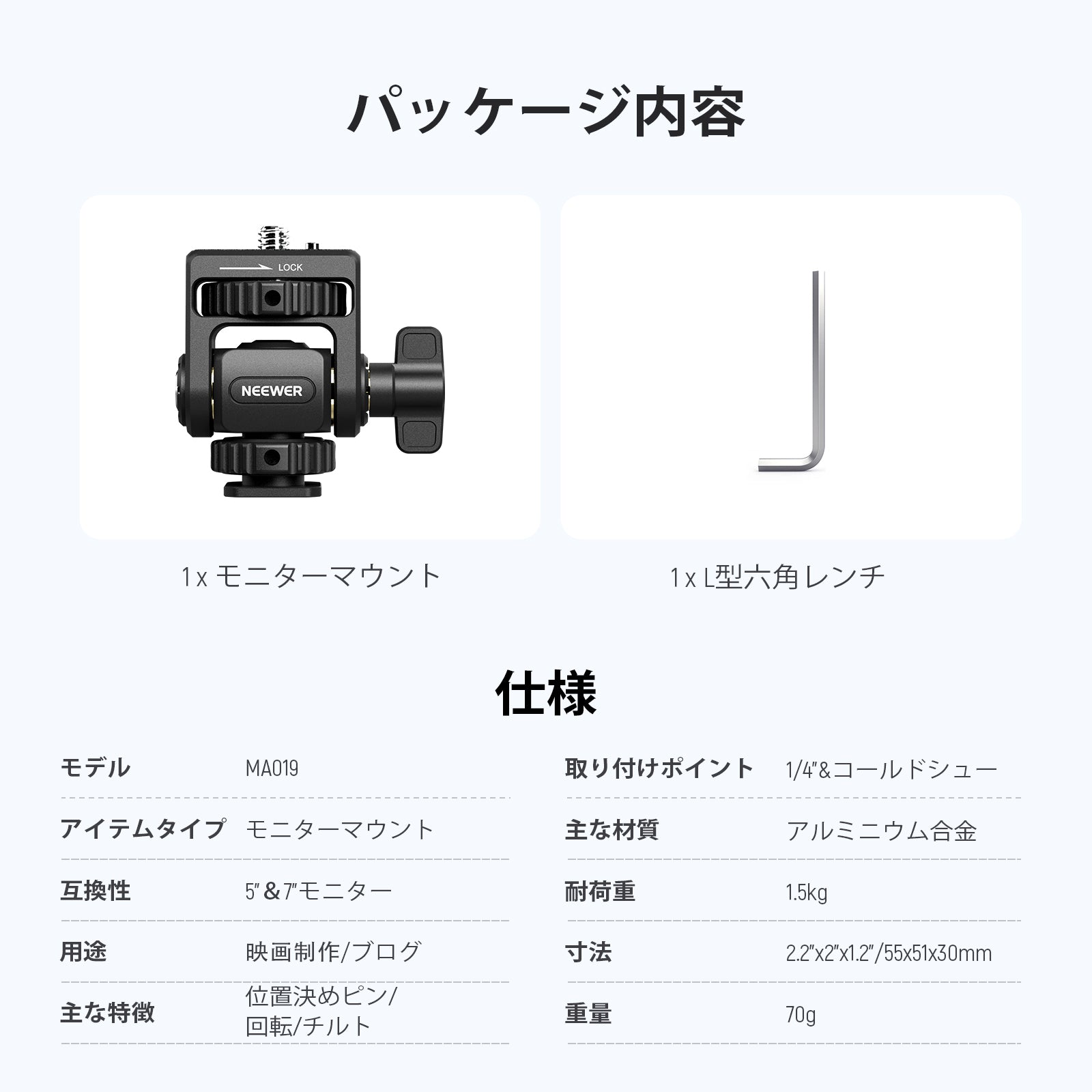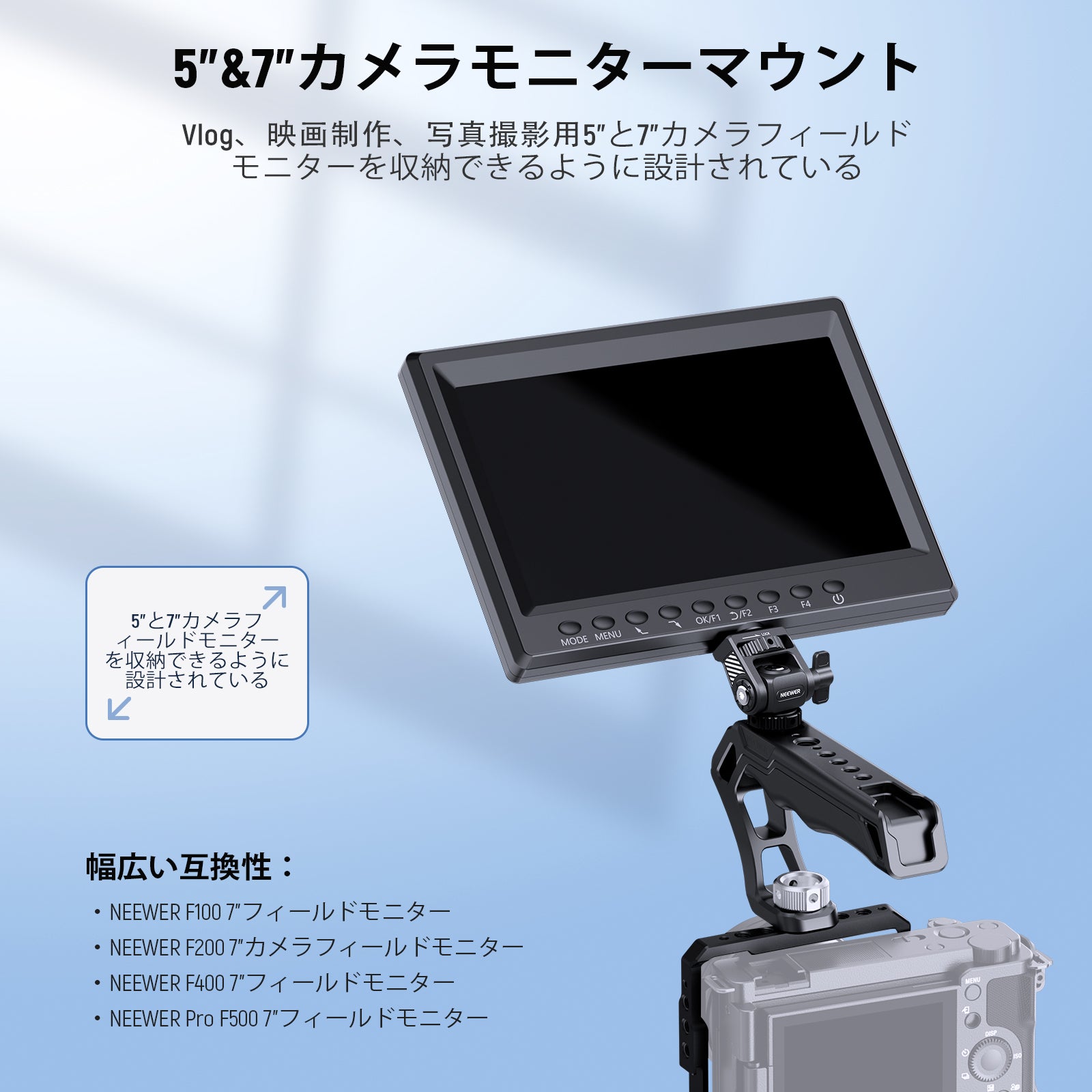- 【5"&7"カメラフィールドモニター用】コールドシュー付きモニターマウントは、5"&7"カメラフィールドモニター用に設計され、コンパチブル SmallRigとNEEWERカメラケージ、コンパチブル Fujifilm Fujiカメラ、ビデオリグ、トップハンドルアクセサリー、サイドハンドル、ジンバルスリングハンドル、カメラホットシュー、ビデオブログ、映画制作、写真撮影に最適です。