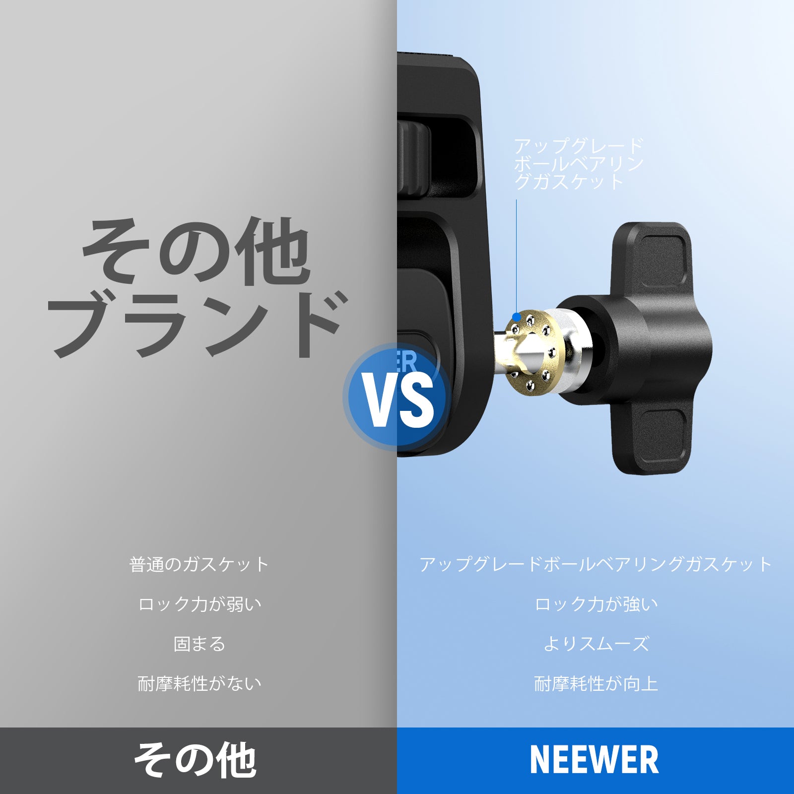 - 【格納式ねじれ防止位置決めピン】格納式ねじれ防止位置決めピンは、コンパチブル Atomos Ninja V Ninja V+、位置決め穴付きモニター、または位置決め穴なしNEEWER F100 F200 F400 Pro F500モニターに対応します。滑り止めゴムパッドが安定性を高め、傷を防ぎます。