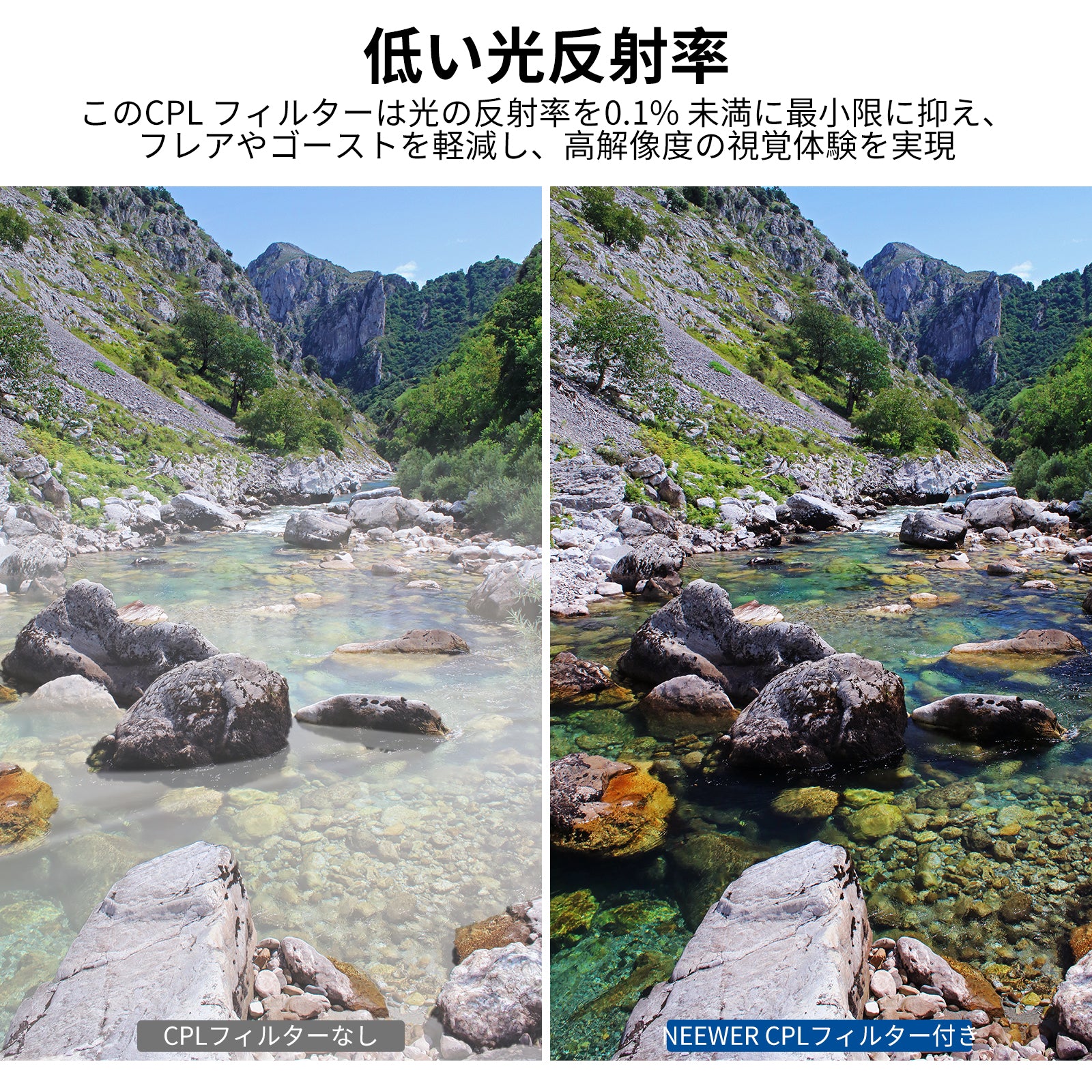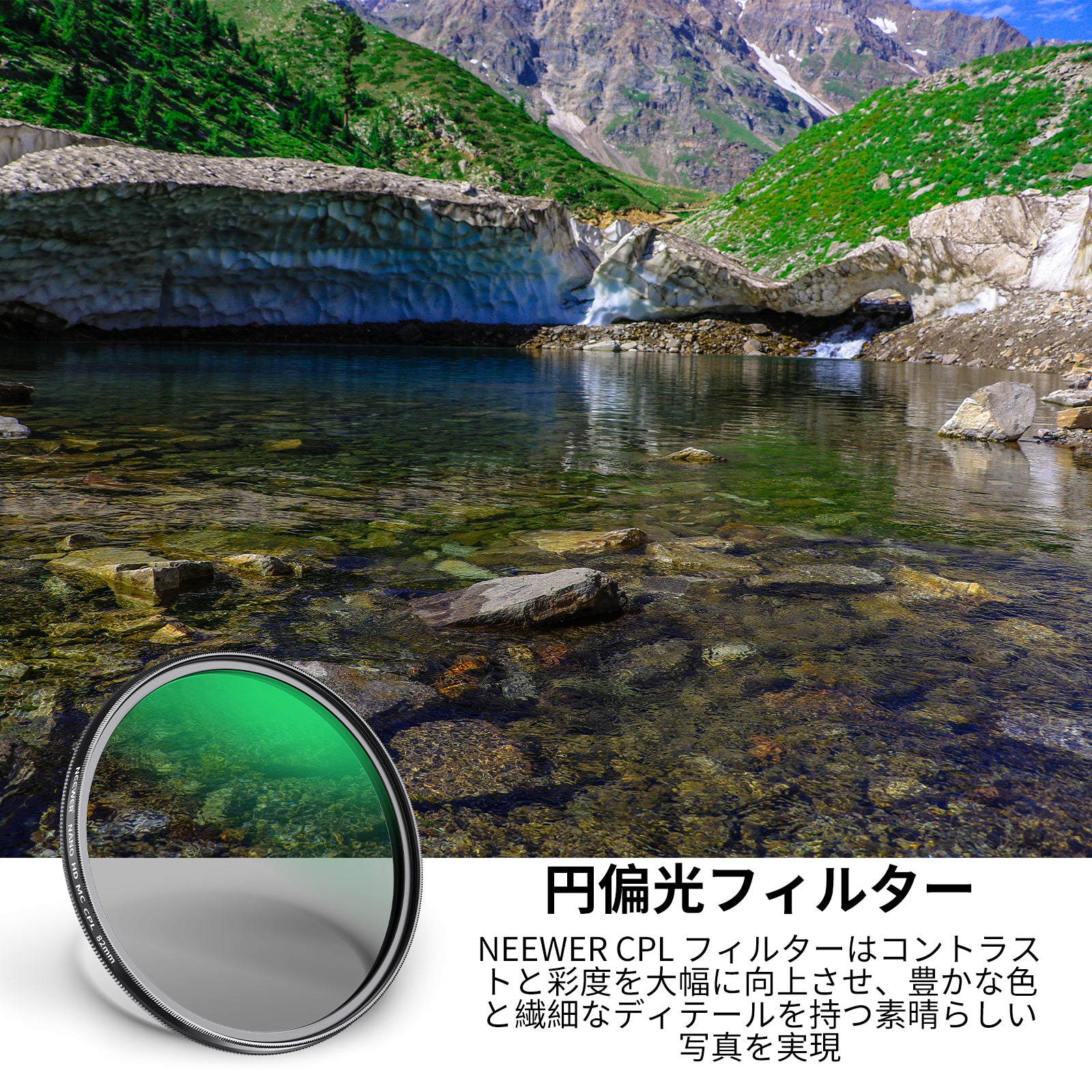 - 【自然な色補正】NEEWER CPLフィルターはコントラストと彩度を大幅に改善し、豊かな色と細部まで再現した素晴らしい写真を実現します。