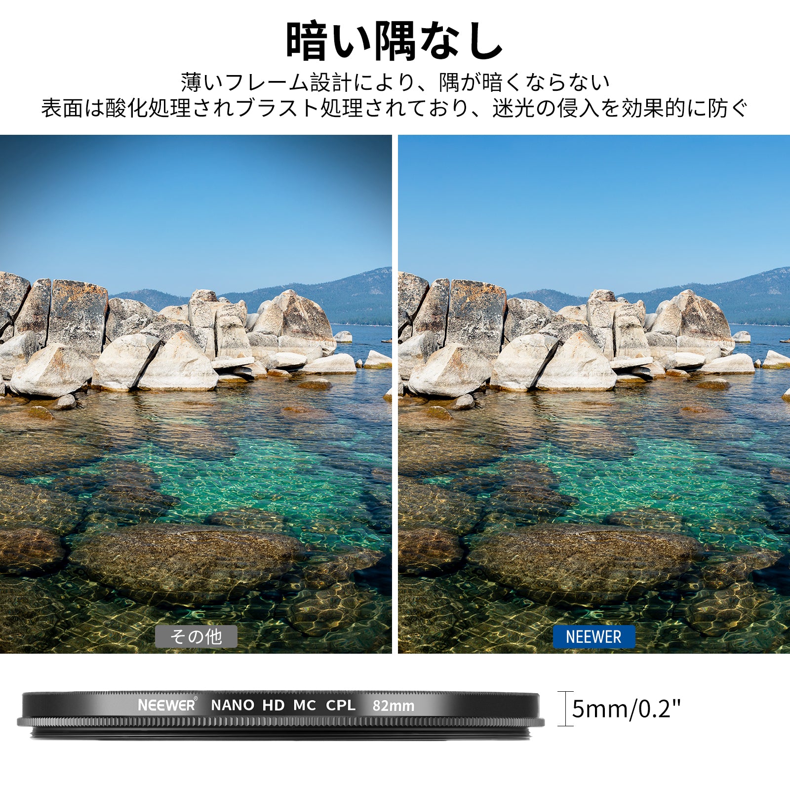 - 【パッケージ内容】82mm CPL フィルター 1 個が含まれております。この82mmカメラフィルターは82mmレンズに対応することに注意してください。ネジのサイズはレンズの前面または側面の「ϕ」(直径) 記号の横にマークされています。フィルターを購入する前にネジのサイズをご確認ください。
