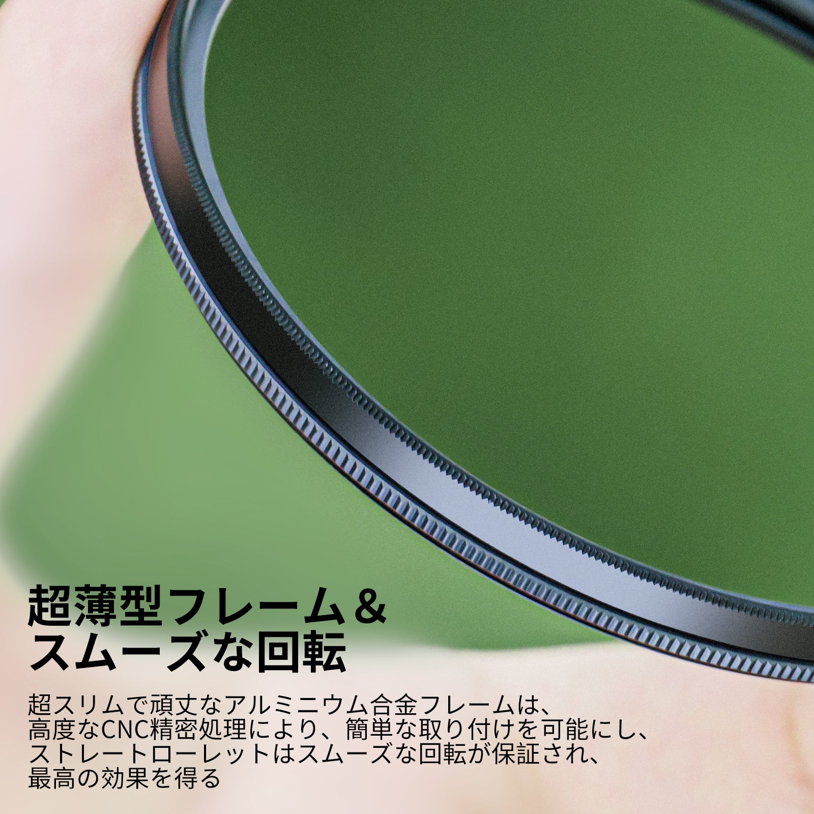 - 【HD視覚体験&低光反射率】複数層の偏光フィルムを備えたプレミアムHD光学ガラスを採用し、このCPLフィルターは光の反射を0.1%未満に最小限に抑え、フレアやゴーストを軽減し、高解像度の視覚体験を実現します。