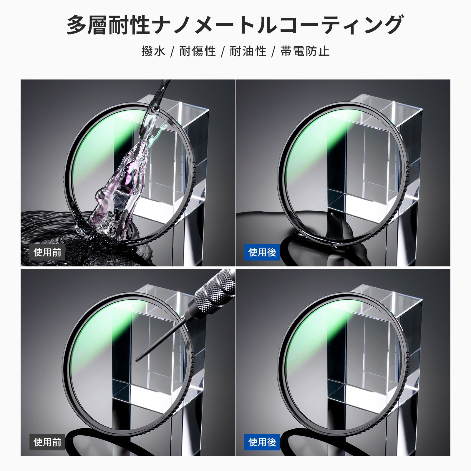 - 【両面多層コーティング】両面に24層のナノコーティングで作られたこのUVフィルターは、反射とグレアを軽減し、帯電防止、耐油性、防水性、耐傷性を備えています。