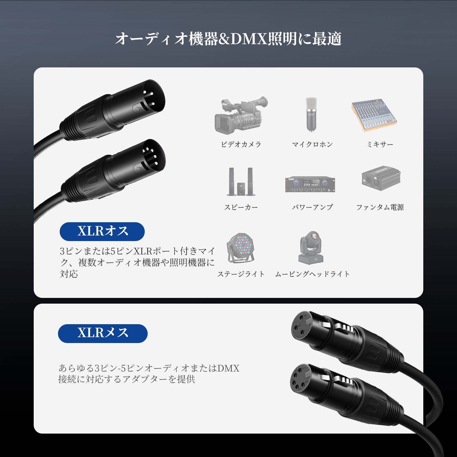 - 【オーディオ機器&DMX照明に最適】3ピンまたは5ピンXLRポート付きマイクに最適で、Blue Yeti Pro、ミキサー、オーディオインターフェース、ワイヤレスシステム、ムービングヘッドライト、パーライト、コントローラーなどDMX512照明機器に対応します。