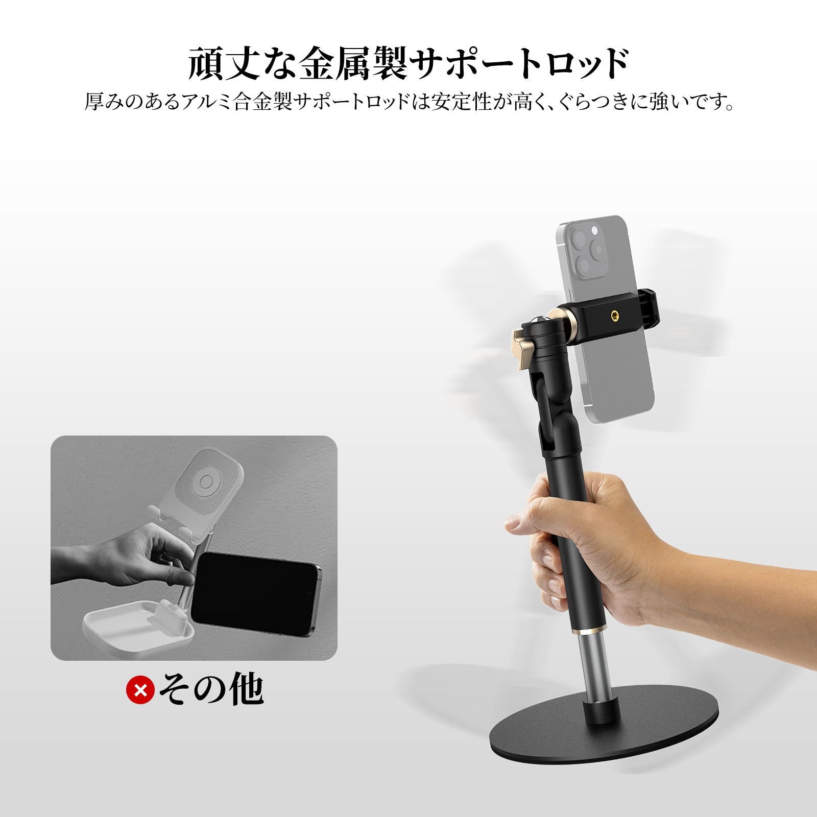 主な特徴:金属製ベース&多角度調整可能