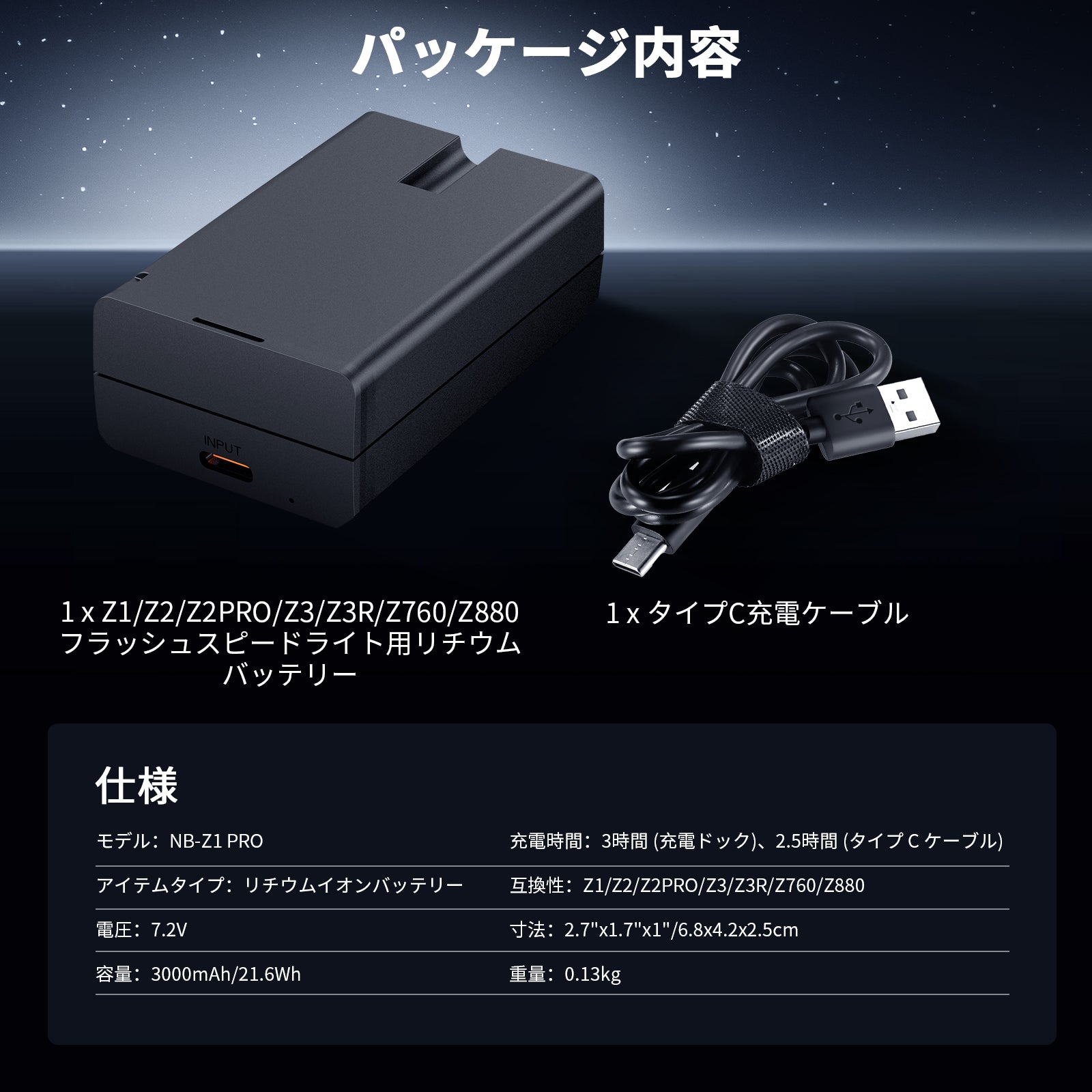 NEEWER NB-Z1 PRO 7.2V/3000mAh 交換用リチウムイオンバッテリー フラッシュスピードライト用