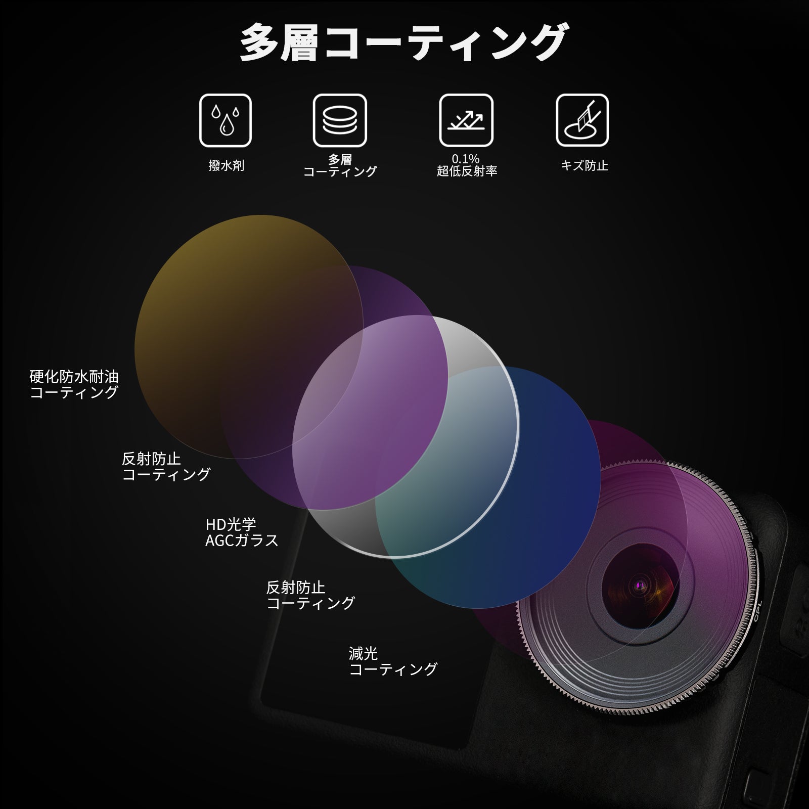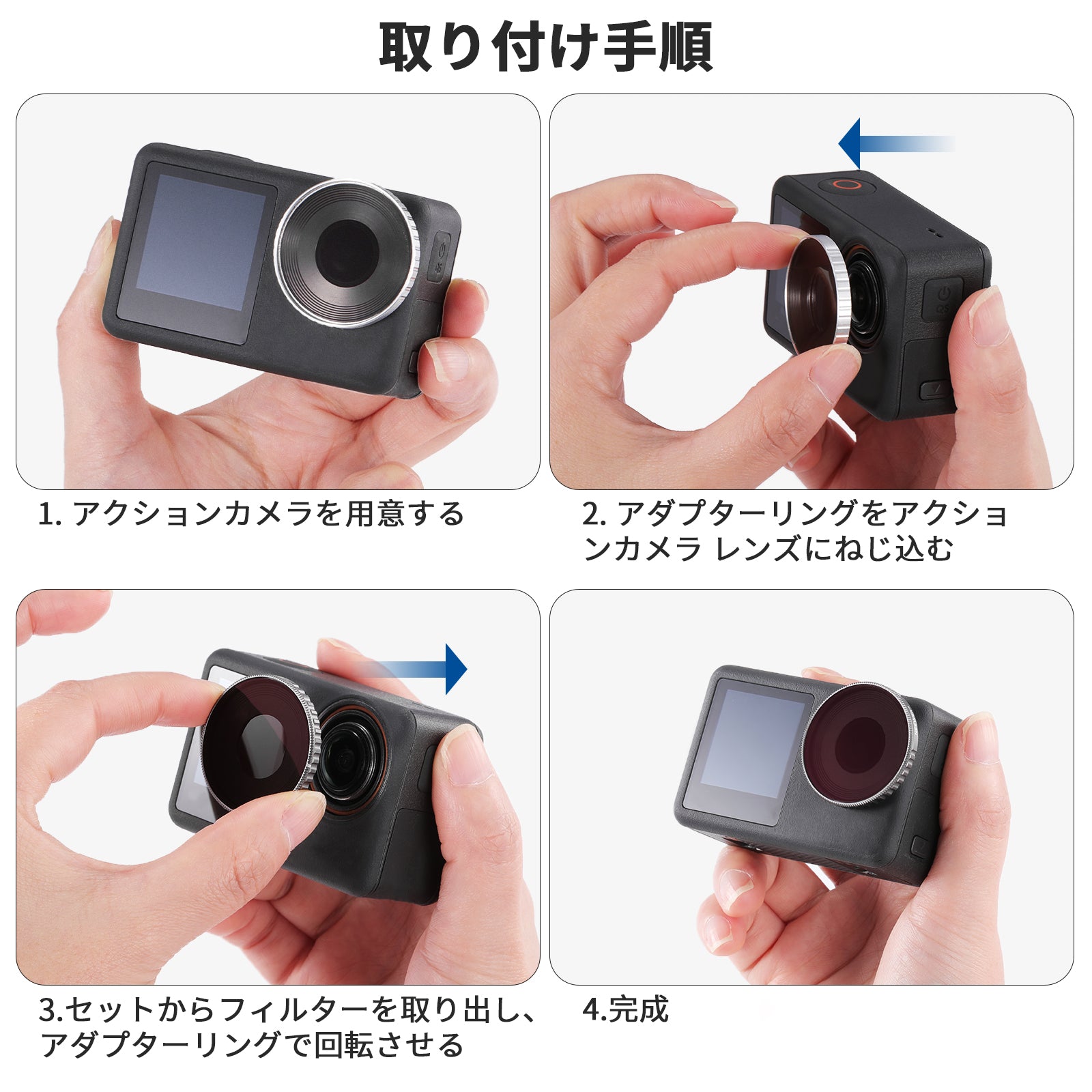 【両面マルチコーティング HD 光学ガラス】HD 光学ガラス製のフィルターは、強い光を遮断しながら鮮明な画像を提供します。両面に多層ナノコーティングが施されており、フィルター表面をほこり、傷、水、油、指紋に対して効果的にします。さらに、フィルター自体が元のアクションカメラレンズを保護する層を提供します。