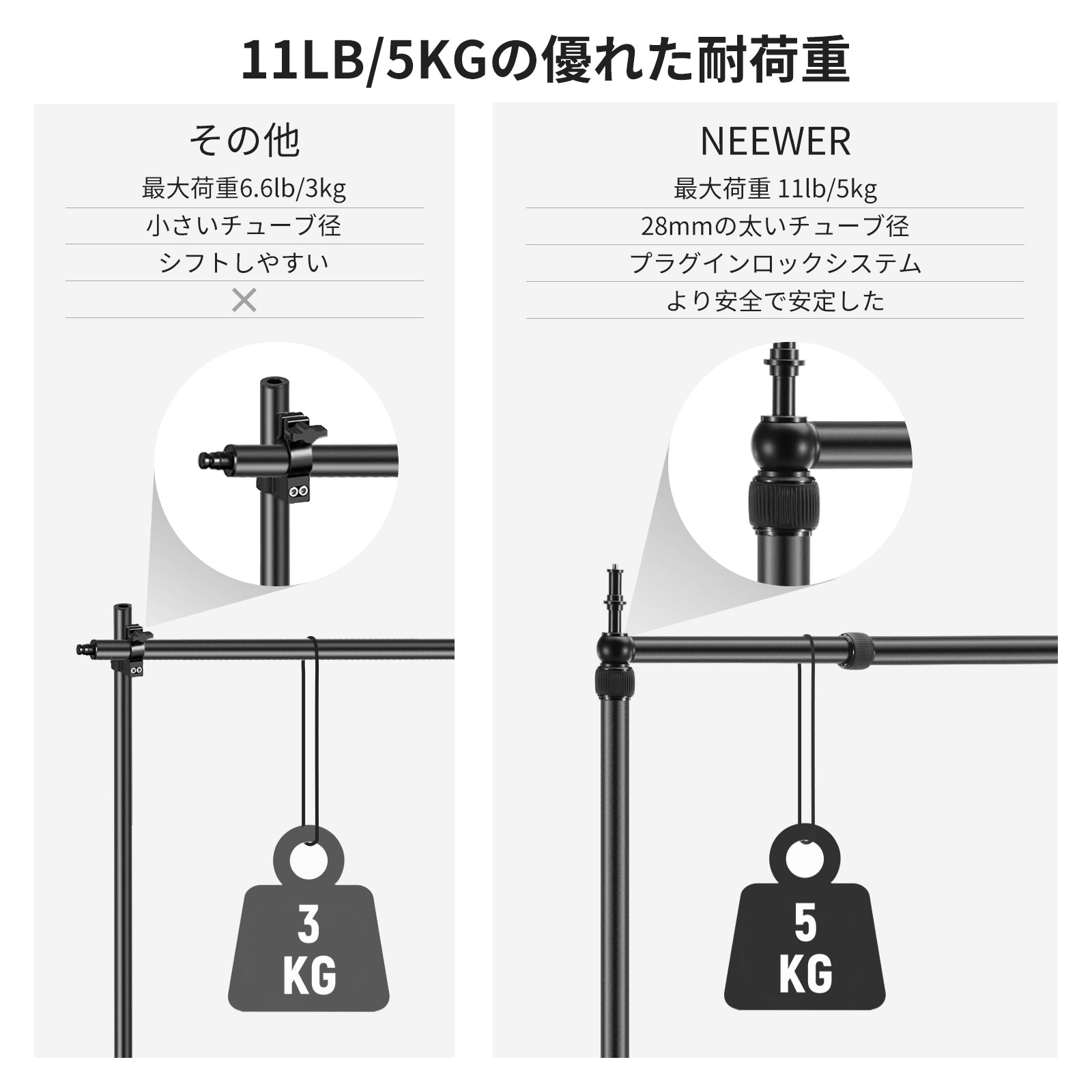 最大耐荷重(クロスバー): 11lb/5kg