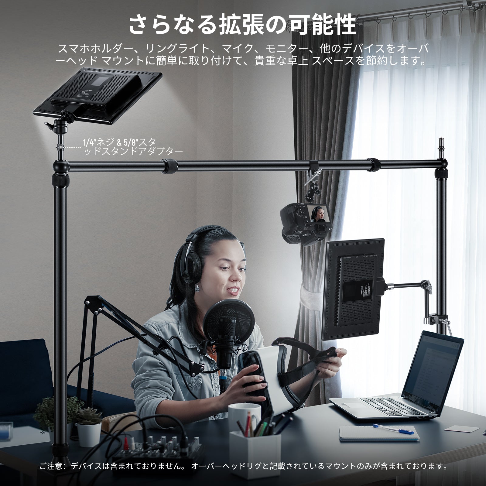 - 【カメラ&スマホ撮影】ウェブカメラまたはカメラはマジックアームの1/4"ネジに取り付けることができ、調節可能なスマホホルダーは幅 2.2"~3.3"(55 ~ 85 mm) の範囲のデバイスに対応できます。ウェブカメラとiPhone 16 15 14 13 Pro Max Samsung Galaxy S24 S23 S22 Ultra Huawei Pixel 8 7 Pro、およびその他のスマートフォンに対応します。