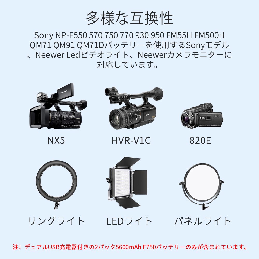 NEEWER 2パックNP-F750 5600mAhリチウムイオン交換用バッテリー