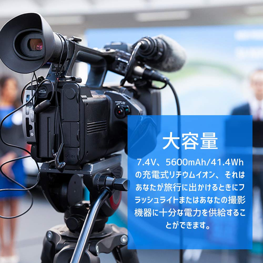 7.4V、5600mAh / 41.4Whの充電式リチウムイオンバッテリー、プレミアムセル付きで、メモリー効果なしでより長い自律性を実現します。5600mAhの大容量で、光が背景を照らす高強度と長寿命を提供し、非常に優れたビデオ撮影を実現します。それはあなたが旅行に出かけるときにフラッシュライトまたはあなたの撮影機器に十分な電力を提供することができ、あなたが保ちたい素晴らしい瞬間を捉えるのに役立ちます。バッテリーセルはULに合格しており、バッテリーの寿命が長く、使用時の安全性が保証されています。
