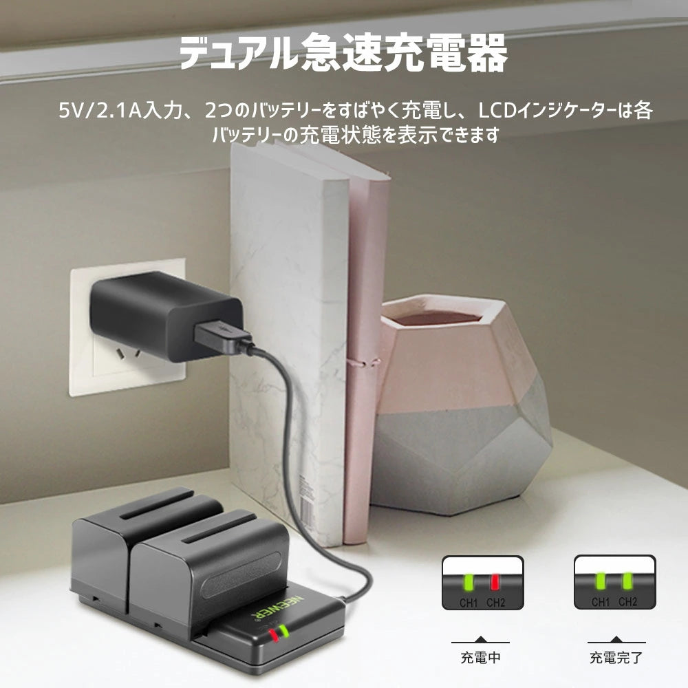 ・【多様な互換性】:Sony NP-F330 NP-F530 NP-F550 NP-F570 NP-F730 NP-F750 NP-F770 NP-F930 NP-F950 NP-F960 NP-F970 NP-FM50 NP-FM55H NP-FM500H NP-QM71 NP-QM91 NP-QM51D NP-QM71D NP-QM91D、Neewer Ledビデオライト、Neewerカメラモニターに対応しています。さまざまなSonyNPシリーズのカメラやオリジナルのメーカーの充電器との互換性があるため、用途が広く、撮影中の中断や作成の熱意を心配する必要はありません。