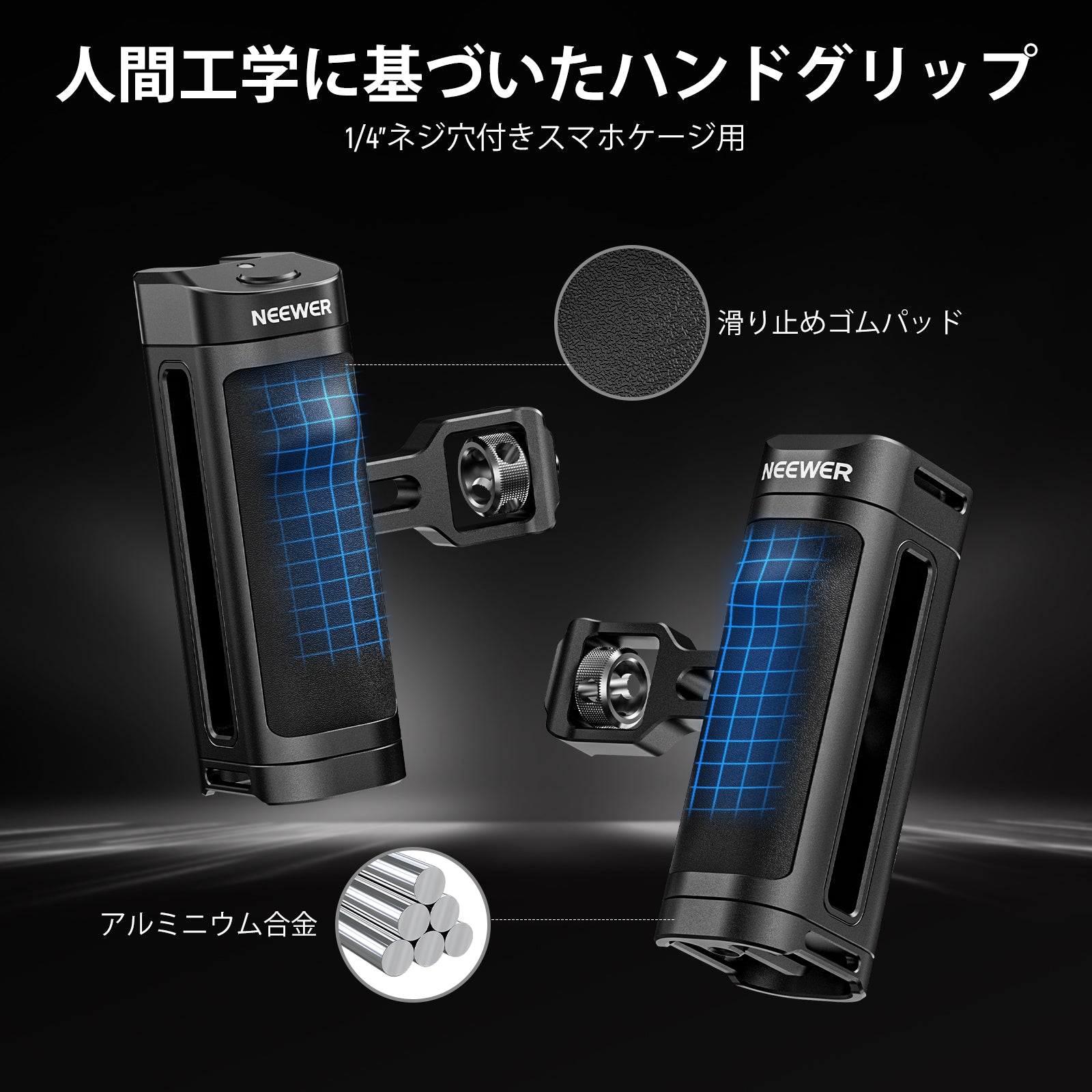 【豊富なアクセサリーマウント】1/4"ネジはNEEWER LT35トラベル三脚やT30フレキシブル三脚などの三脚にスマホケージを取り付け、CA070ショルダーストラップも接続できます。コールドシューマウントはCM14プロマイクとPL81/RGB62 LEDビデオライトを接続し、ビデオ画質を向上させます。背面スロットには、CM22/CM28無線マイクレシーバーを装着可能です。