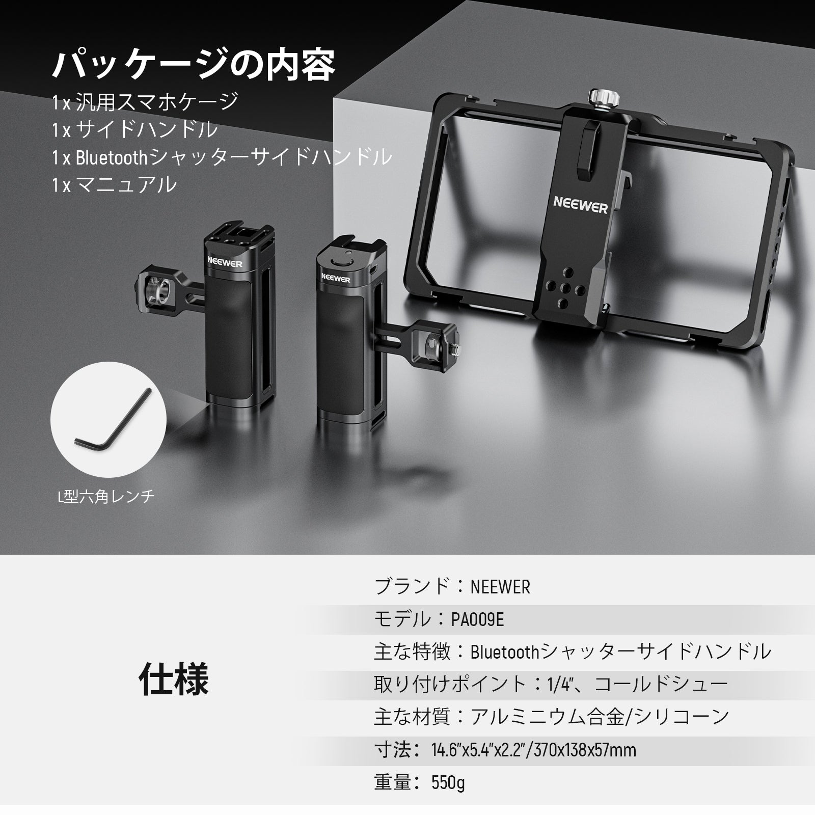 - 【Bluetoothシャッターサイドハンドル】1つのハンドル(PA005E)はBluetoothでiOS/Androidスマホとペアリングでき、シャッターボタンを押すだけで写真やビデオを撮影できます。映画制作、YouTube/TikTokビデオブログ、生放送、自撮りなど創作に最適です。