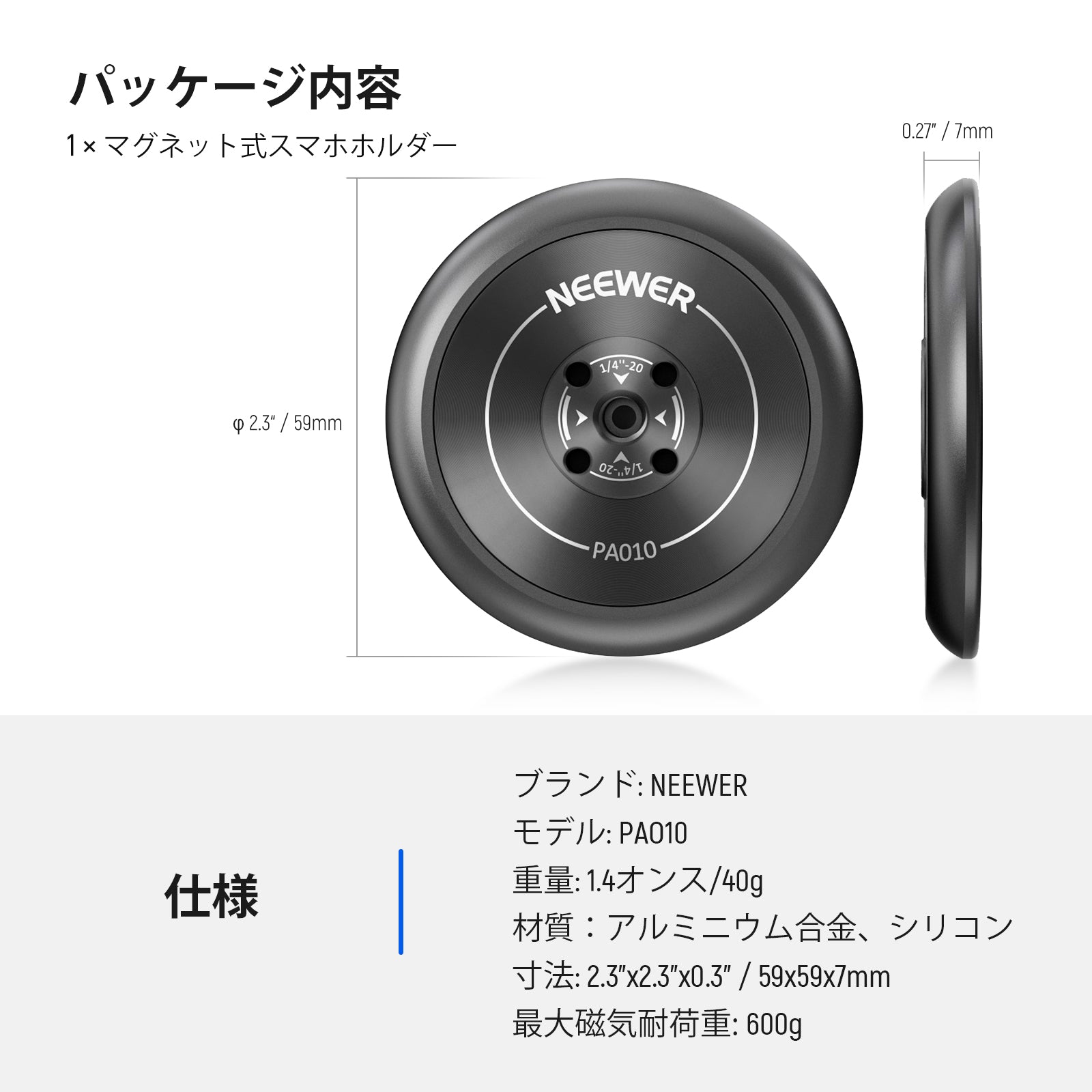 NEEWER PA010 マグネット式 スマホ三脚マウントアダプター