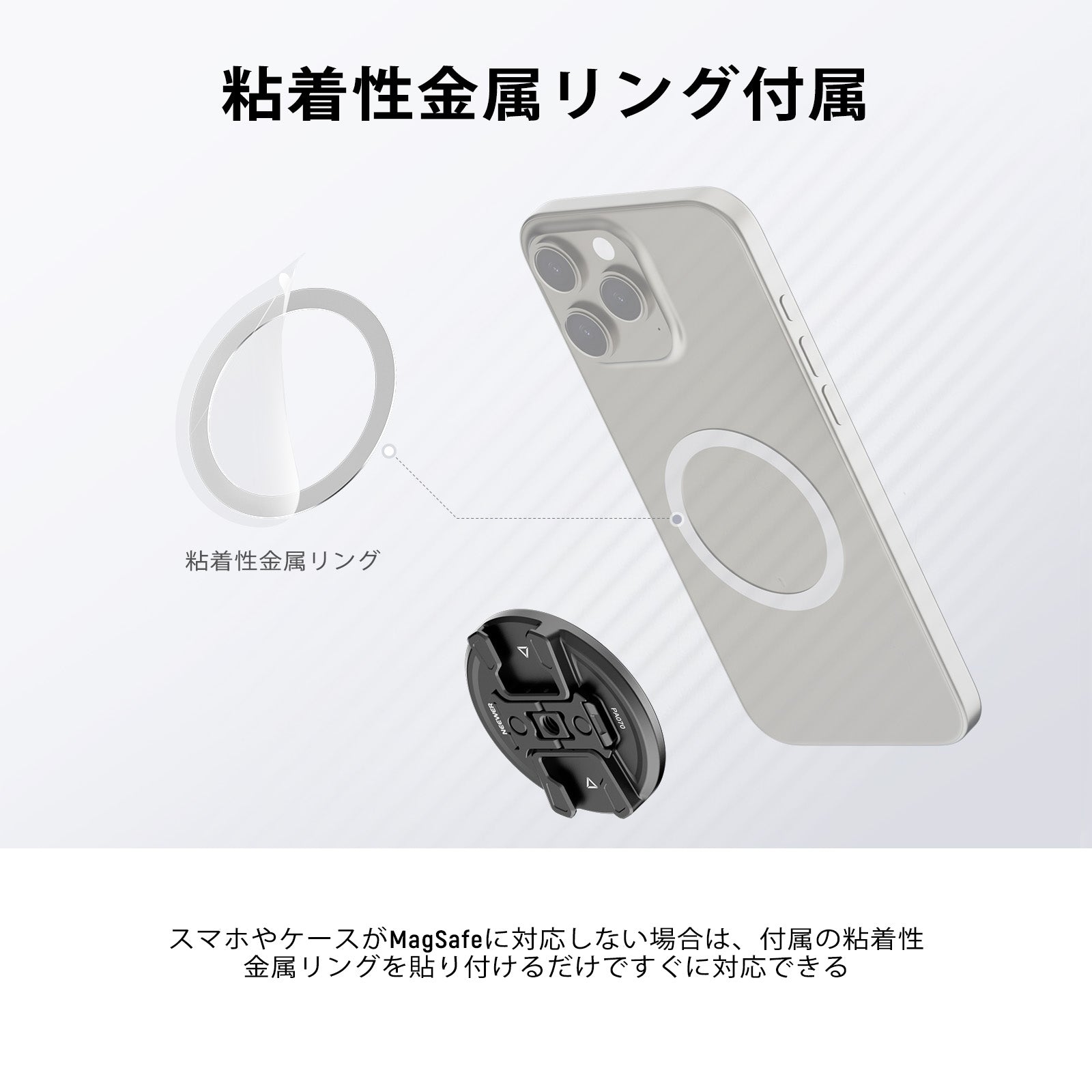 - 【粘着金属リング付属】スマホやケースがMagSafeに対応していない場合は、付属の粘着金属リングを背面に貼り付けて、すぐに強力な磁気アタッチメントを楽しむことができます。