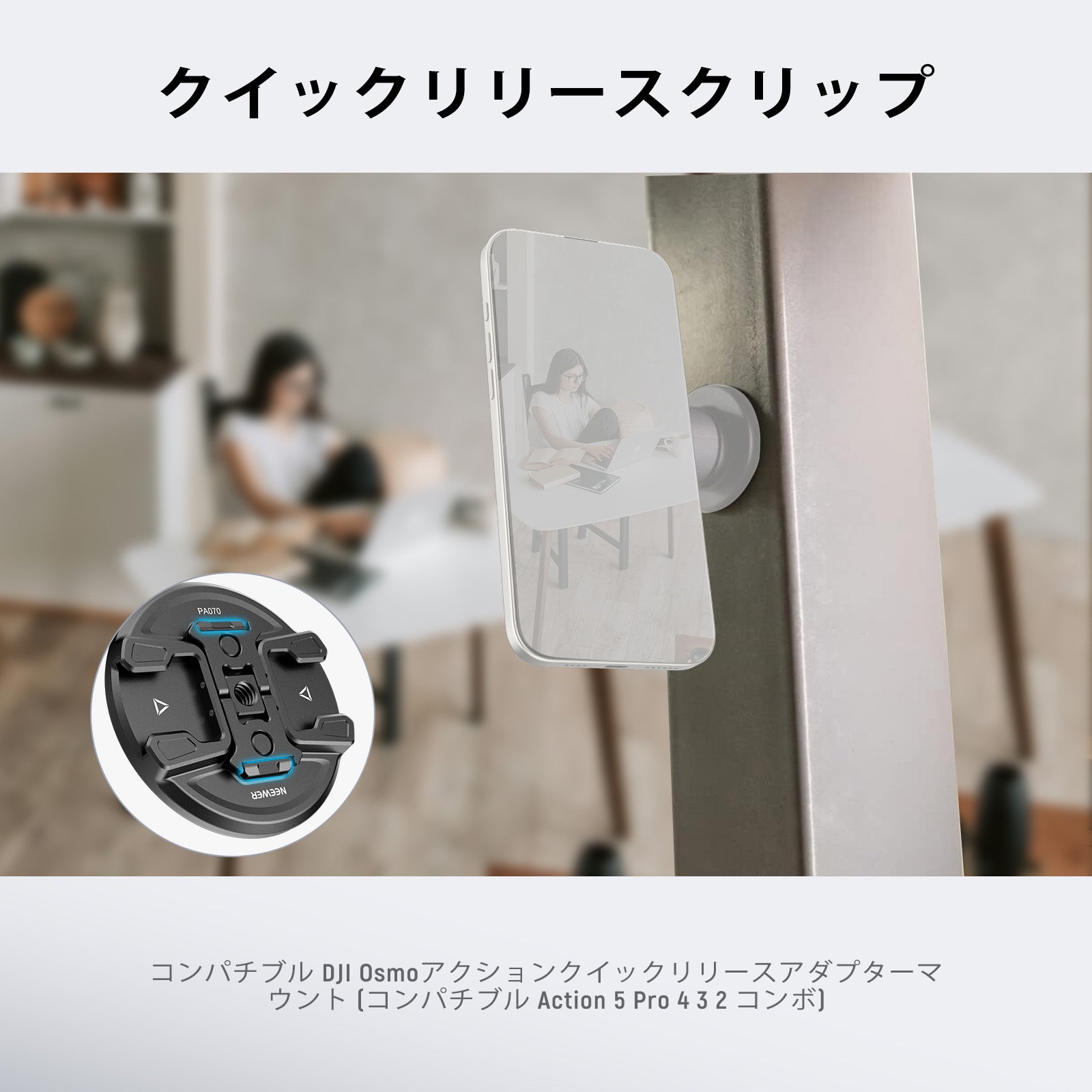 - 【折りたたみ式アクションカメラマウント】チェストマウント、ネックレス式マウント、バイクマウント、吸盤など、無制限のアクションカメラアクセサリーにスマホを取り付け、創造的なモバイル撮影ができます。また、コンパチブル Action 5 Pro 4 3 2 combo用DJI Osmoアクションクイックリリースアダプターマウント。
