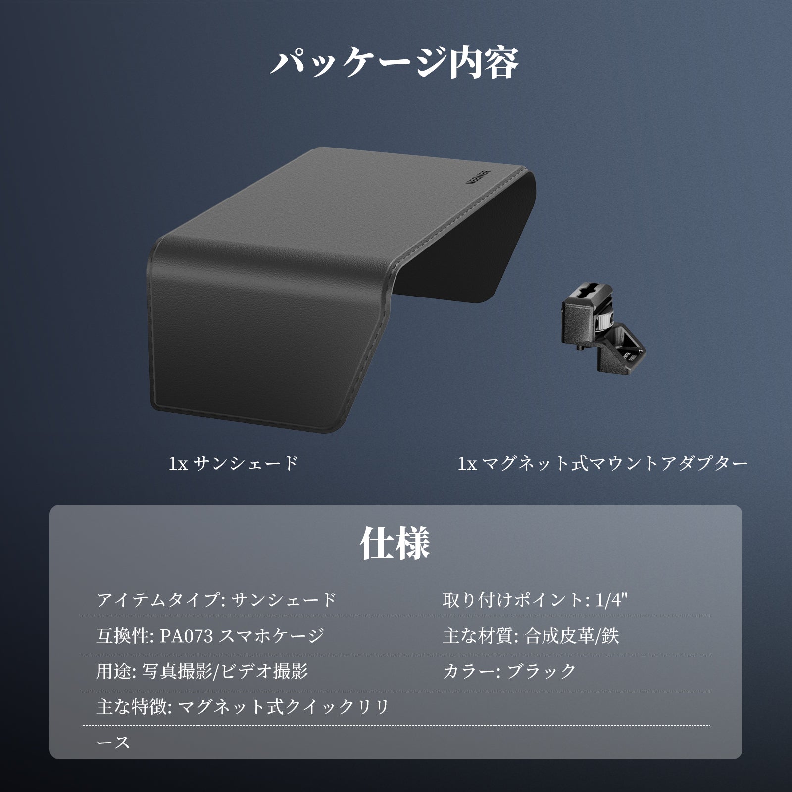 - 【iPhone 16 Pro/Pro Max対応】サンシェードはiPhone 16 Pro/Pro Max専用ケージ(PA073/PA074)にのみ対応しています。コンテンツクリエイターにとって必要なアクセサリーとして、インフルエンサーにとって必要なアイテムとして最適です。