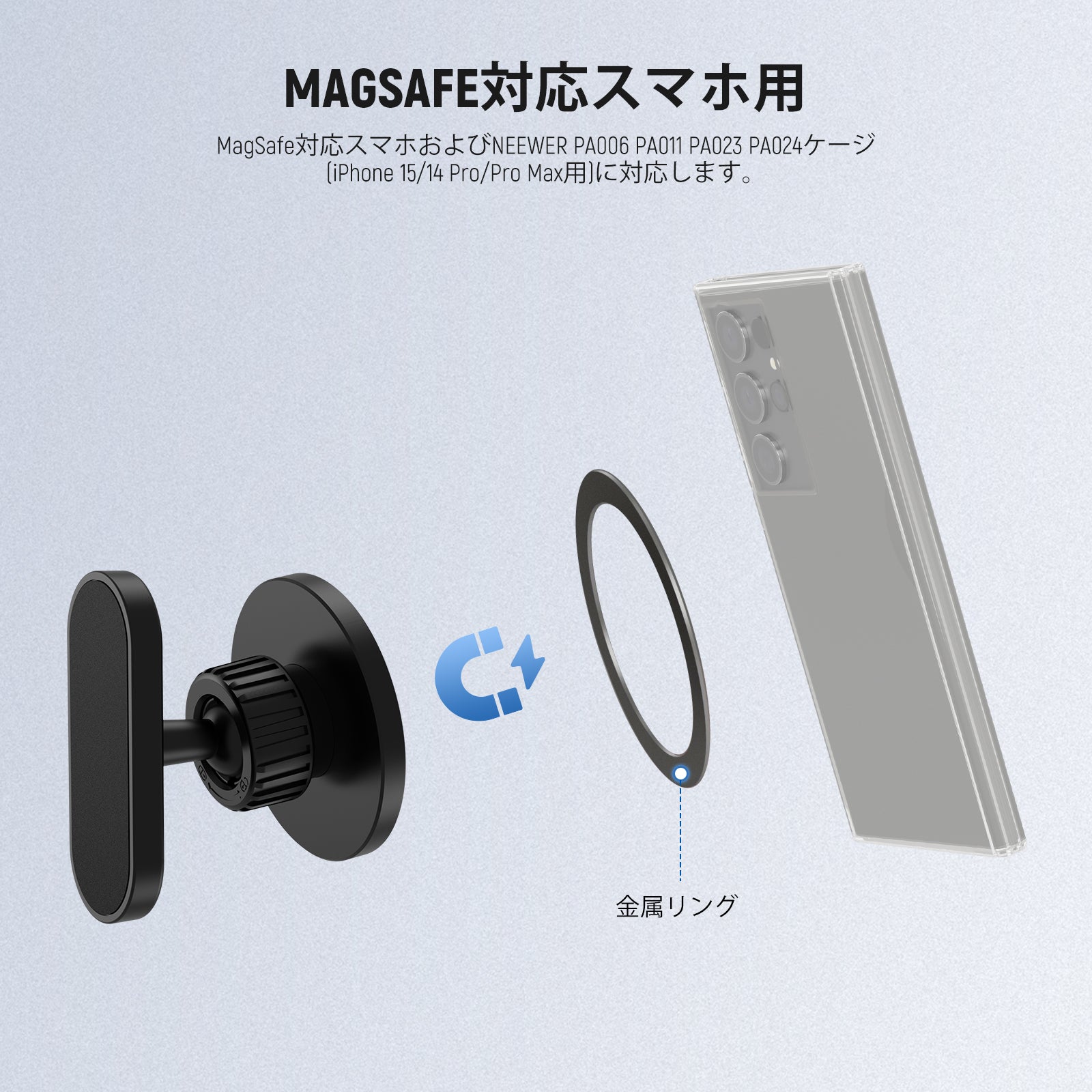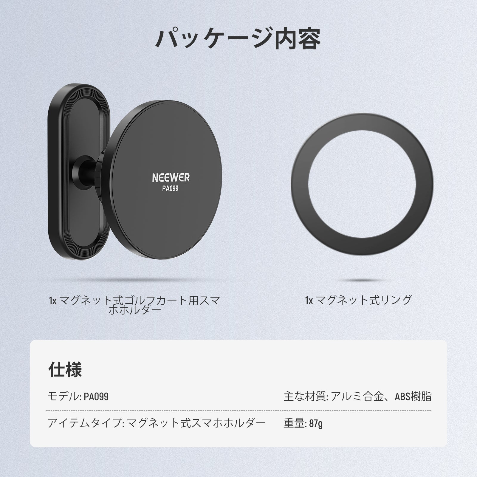 - 【マグネット式スマホアタッチメント】ゴルフカート用スマホホルダーはMagSafeシステムに対応しており、iPhone 16、15、Pro Max、14、13、12シリーズ、MagSafe対応スマホケースカバー、そしてiPhone 16、15 Pro、Pro Max用NEEWER PA073、PA074、PA023、PA024ケージにも対応しています。 MagSafe非対応のスマホには、付属のマグネットリングをご使用ください。Galaxy S25、S24、S23 Ultra、Pixel 9 Pro、などのスマホに対応し、カメラ撮影アクセサリーとしてお使いいただけます。