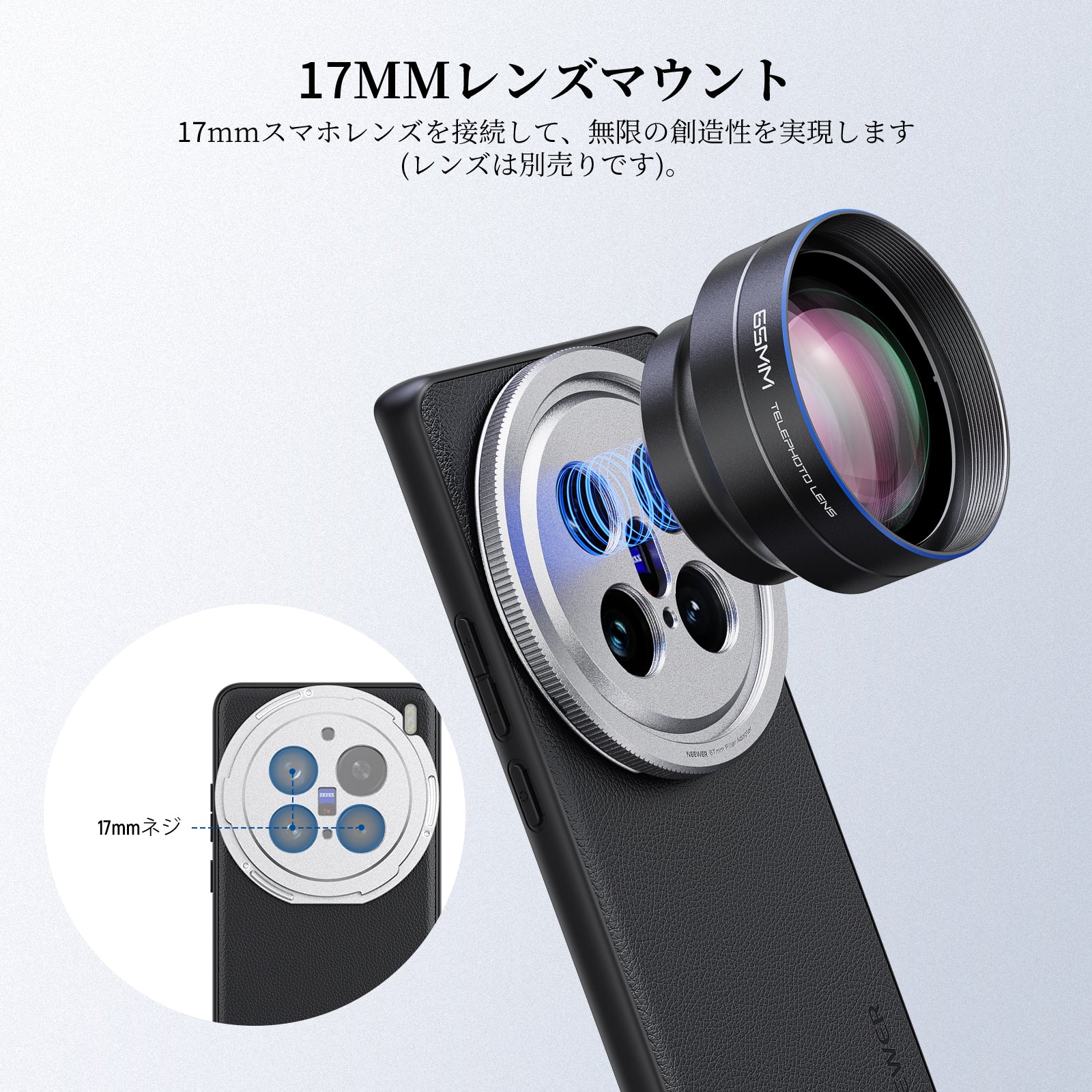- 【17mmレンズネジ穴付き】メインカメラと望遠カメラに17mmレンズネジ穴を内蔵し、マクロレンズ、魚眼レンズ、顕微鏡、望遠レンズ、広角レンズ、ブルーアナモルフィックレンズなど、17mmスマホレンズを接続でき、創造な撮影が可能です(レンズは別売りです)。