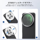 - 【スナップオン式67mmフィルターアダプター】67mmフィルターアダプターを装着し、NDフィルター、CPLフィルター、拡散フィルター、光害フィルター、グラデフィルターなどを取り付け、創造な撮影が可能です(フィルターは別売りです)。