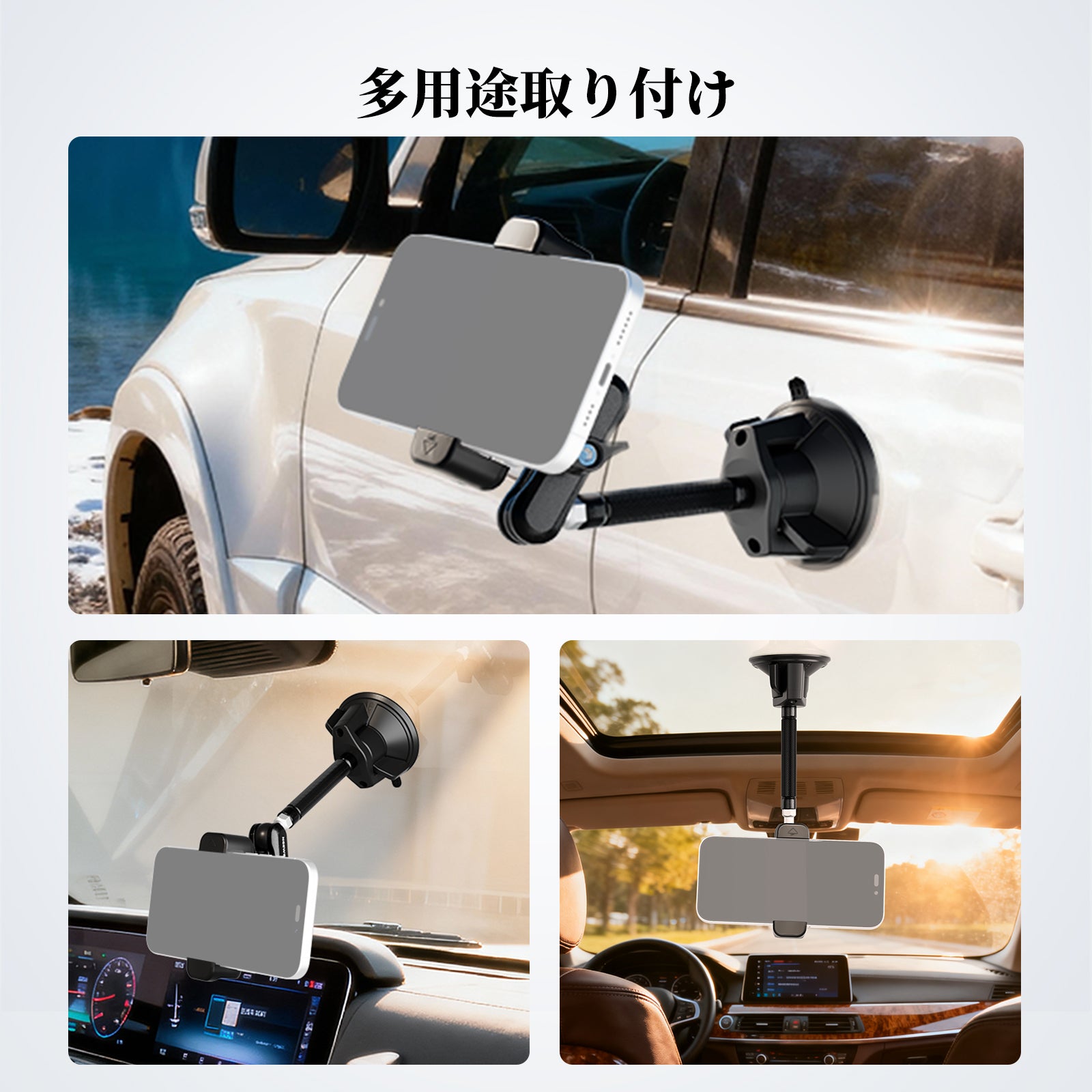 - 【汎用互換性】吸盤式スタンドマウントは、iPhone 16 Pro Max Plus/15/14/13、Galaxy S25 Ultra、Androidなど、一般的なスマホに対応しています。POV旅行ブログ、ナビゲーション、ビデオコール、スマホカメラでの動画撮影など、女性にも男性にも最適なカーアクセサリーです。