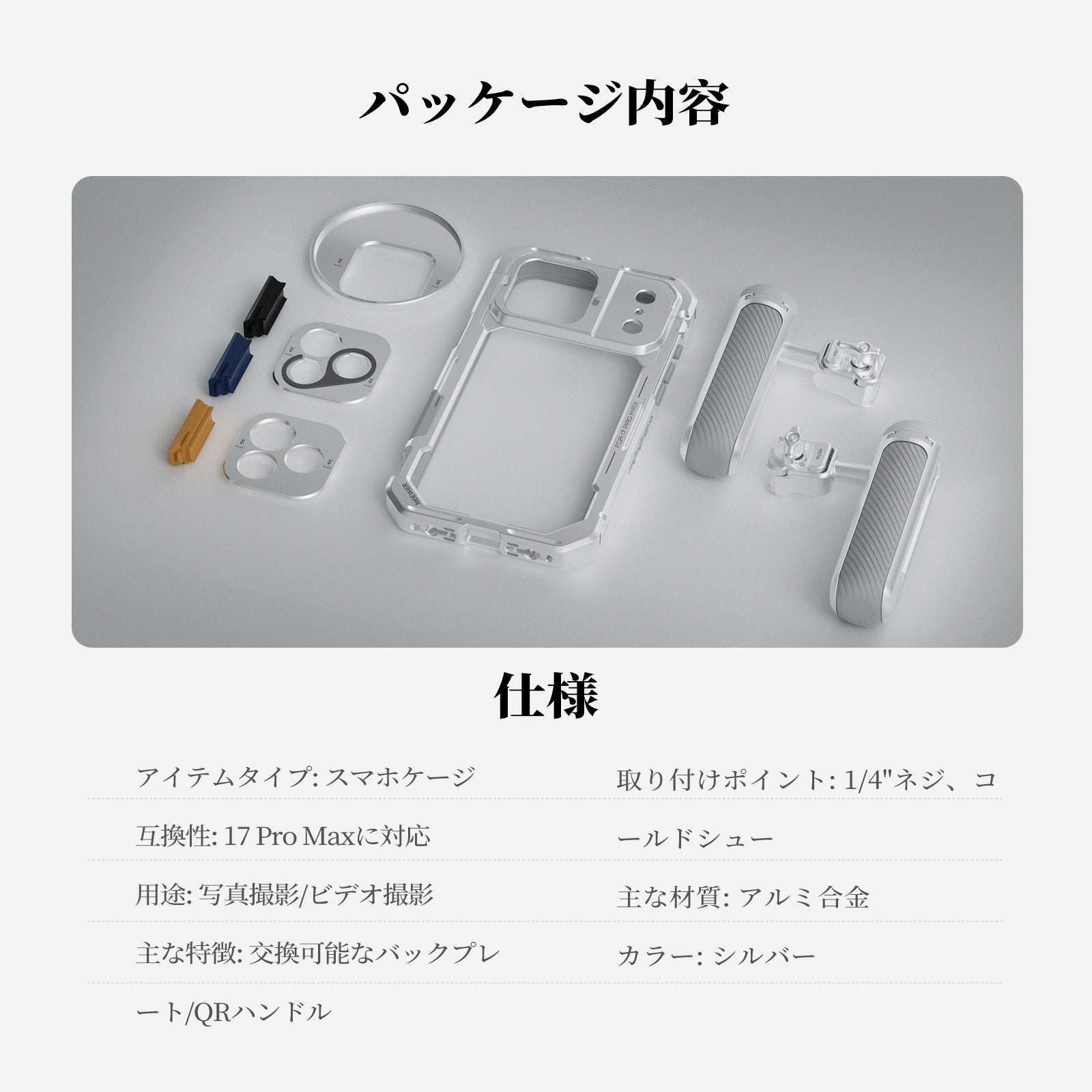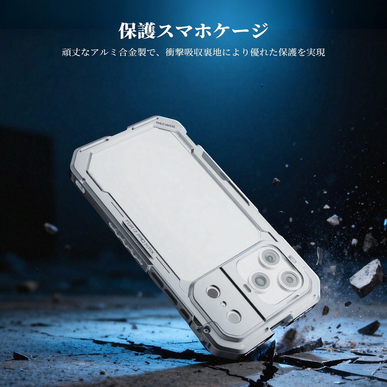 - 【iPhone 17 Pro Max用スマホケージ】頑丈なアルミ合金製ビデオリグは、iPhone 17 Pro Maxに対応し、耐衝撃ゴム裏地を備え、屋外での使用時にスマホを保護します。