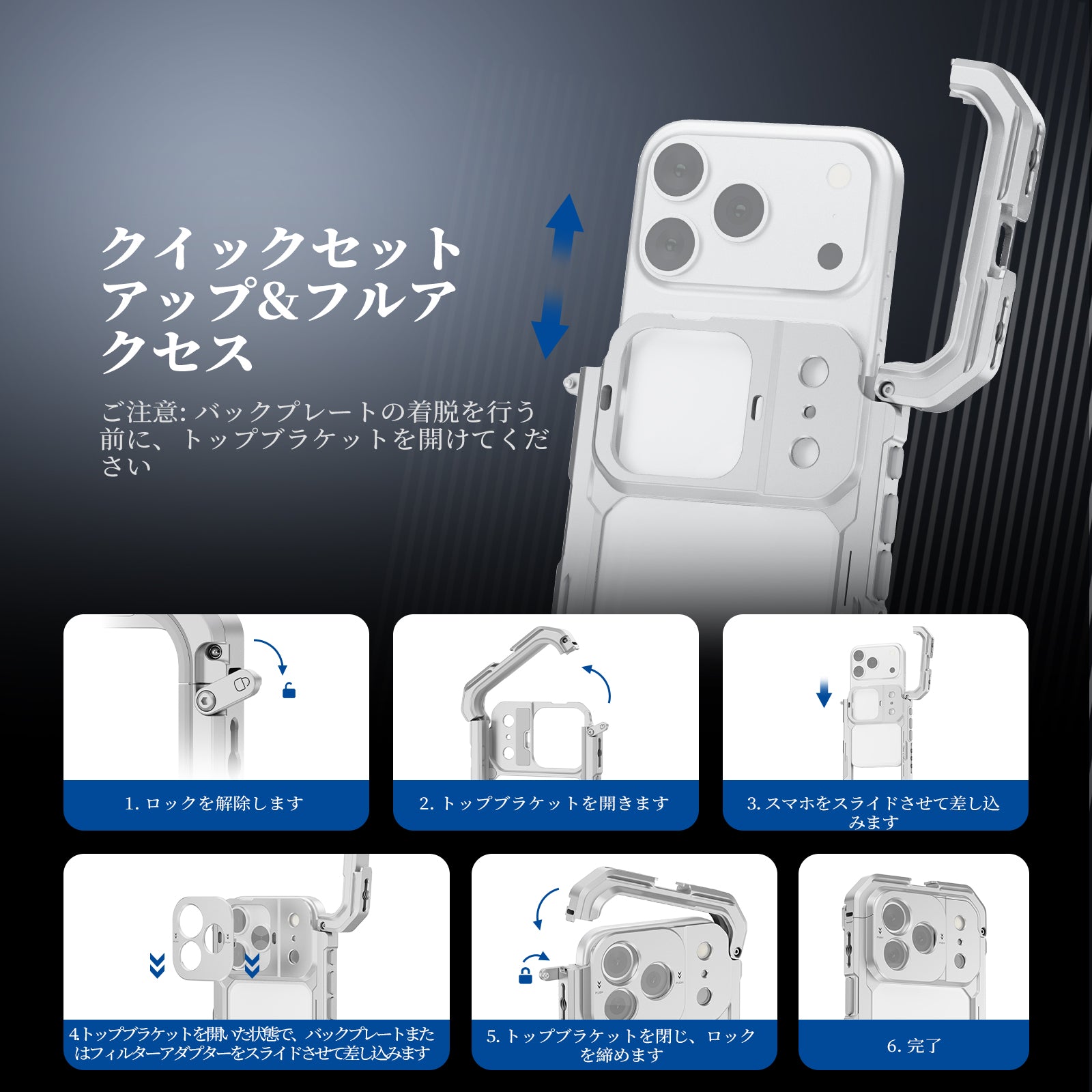 - 【クイックセットアップ&フルアクセス】サイドラッチで瞬時に開閉・ロックで、MagSafe充電とすべてスマホ機能にシームレスに対応します。取り外し可能なキャップにより、カメラコントロールにフルアクセスします。