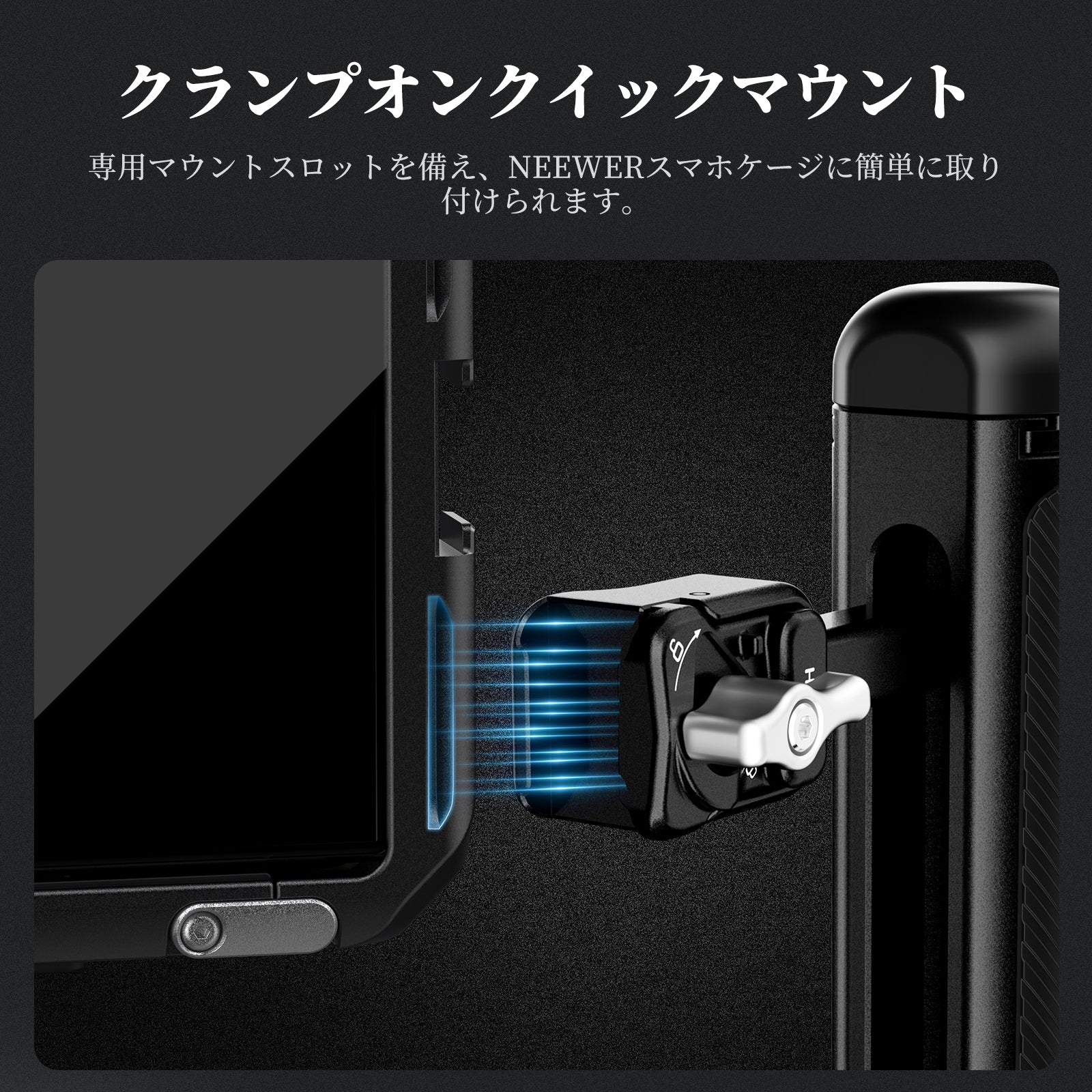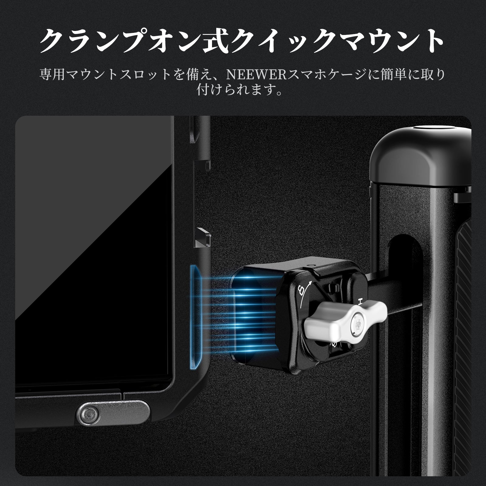 - 【クランプオンQRサイドハンドル】クイックリリースクランプスロットを備えたNEEWERスマホケージモデル用に設計されており、iPhone 15 Pro/15 Pro Max用PA043/PA044、iPhone 16 Pro/16 Pro Max用PA073/PA074、Galaxy S24 Ultra/S25 Ultra用PA042/PA082、15 Ultra Android用PA091が含まれます。コンテンツクリエーターにとって必要なスマホカメラアクセサリーとして、インフルエンサーにとって必要な撮影ギアとして最適です。