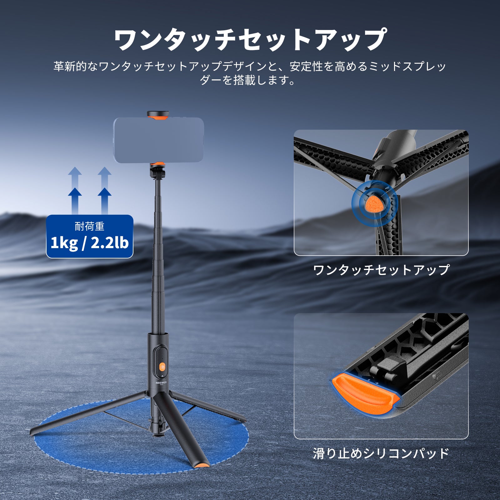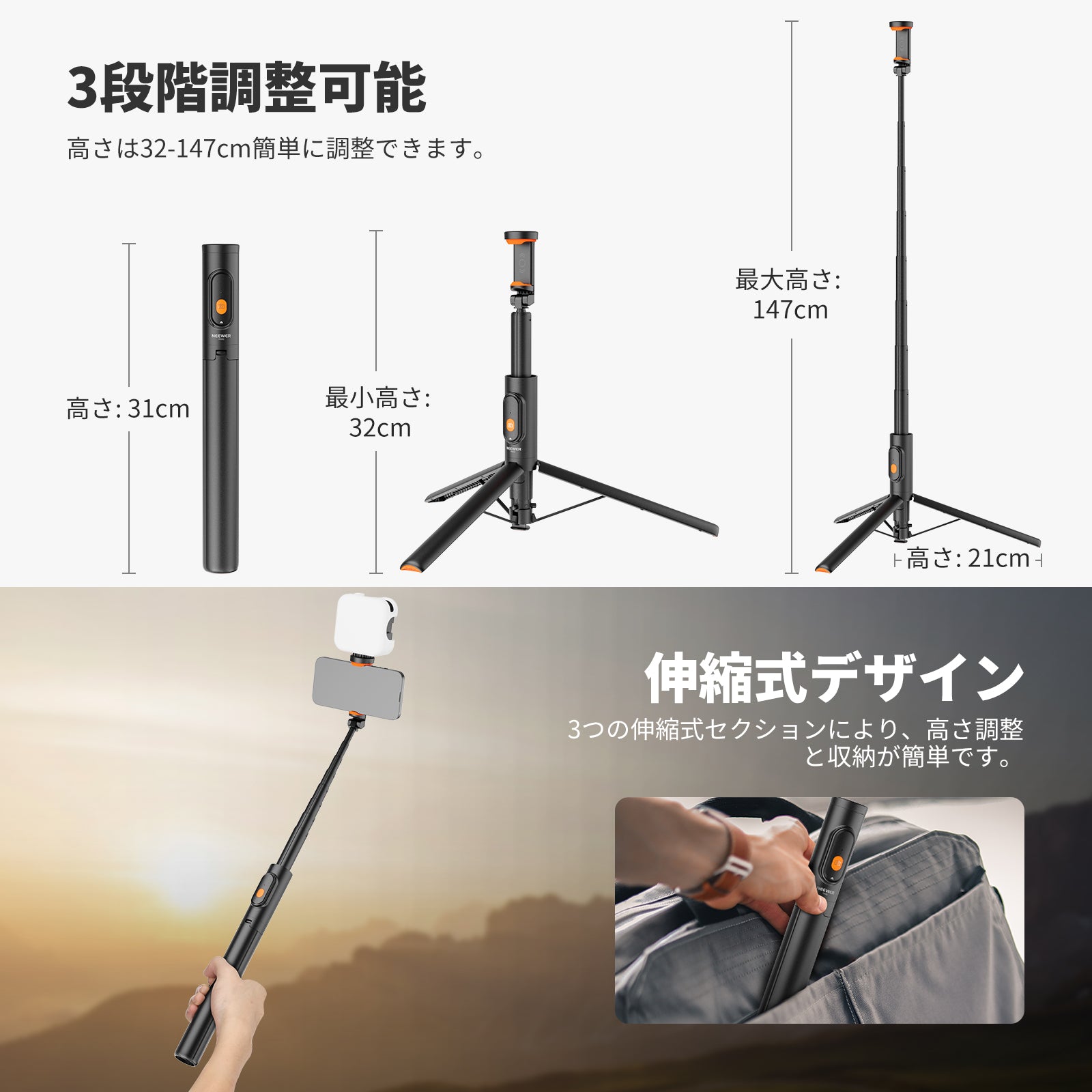 NEEWER BASICS PA992 147cm スマホ用 自撮り棒三脚