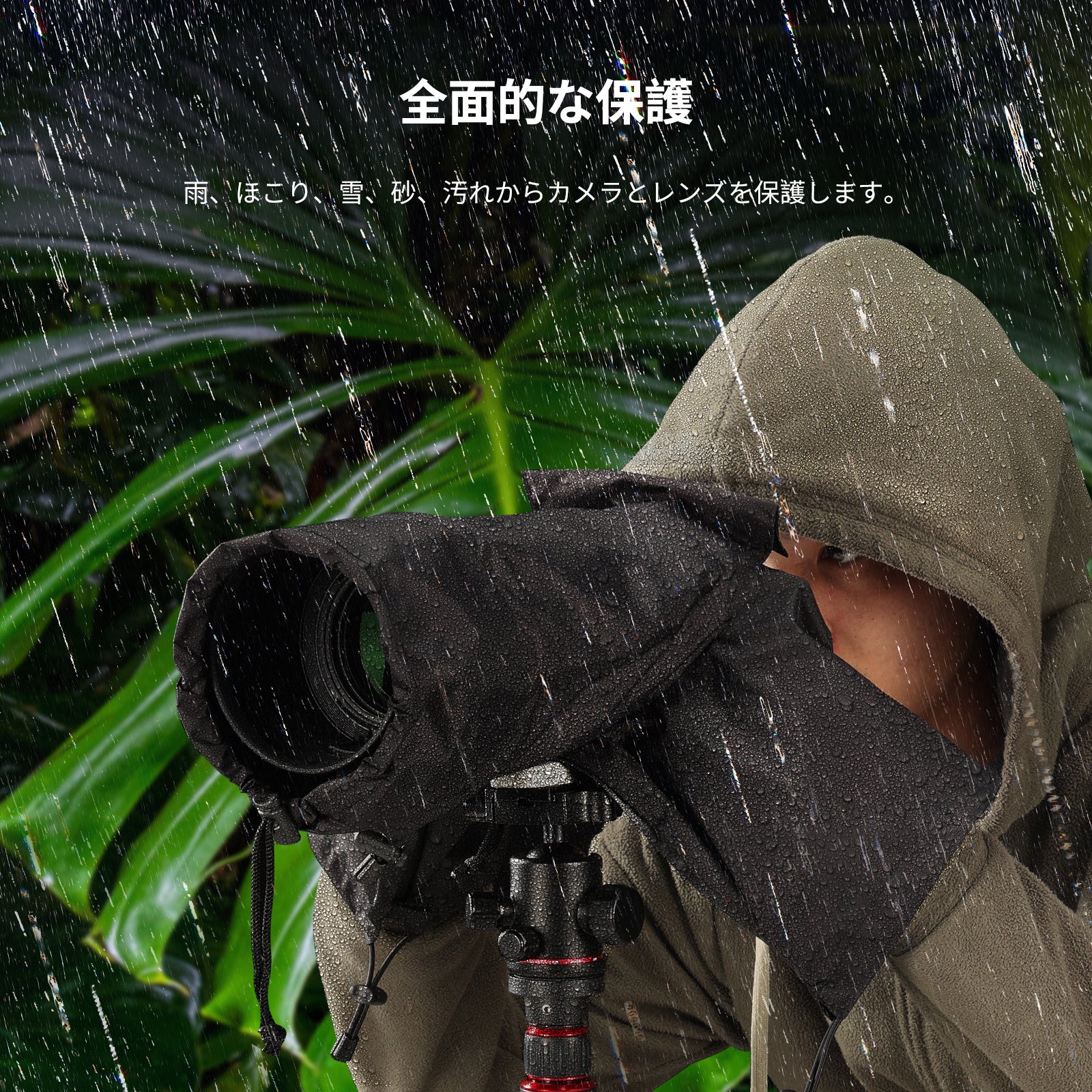 【耐久性と速乾性に優れたレインカバー】屋外での撮影時に、カメラとレンズを雨、ほこり、雪、砂、汚れから保護するレインカバーです。ナイロン生地は防水性があり、過酷な気象条件でも耐久性があります。