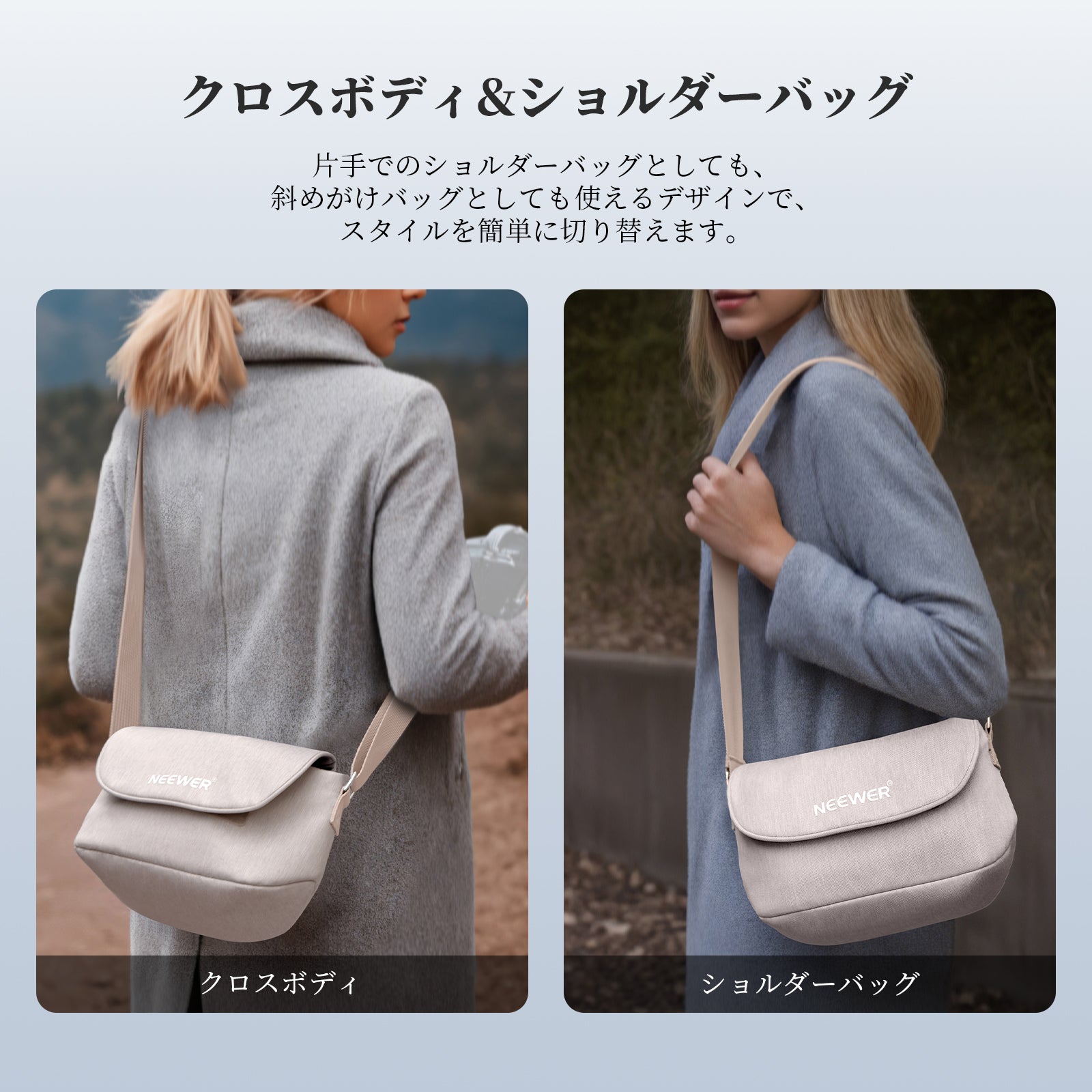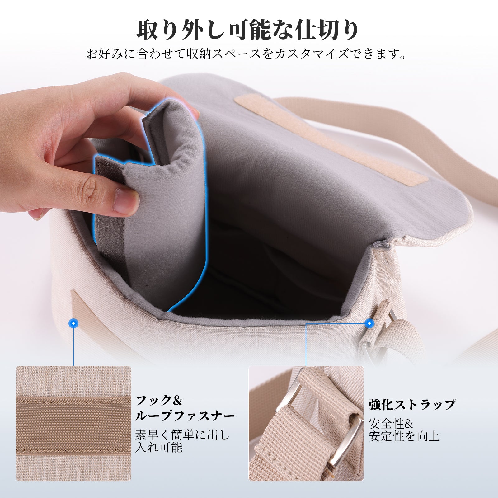 【クロスボディ&ショルダーベアリング】ミラーレスカメラバッグは、シングルショルダーとクロスボディのデザインがあり、スタイルを簡単に切り替えます。調整可能なストラップは、お好みに合わせて快適なフィット感を提供し、補強されたストラップは安全性と安定性を高めます。
