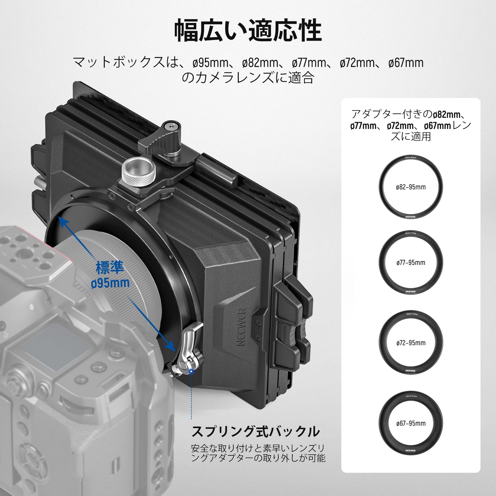アダプターリングサイズ:ϕ67–95mm、ϕ72–95mm、ϕ77–95mm、ϕ82–95mm