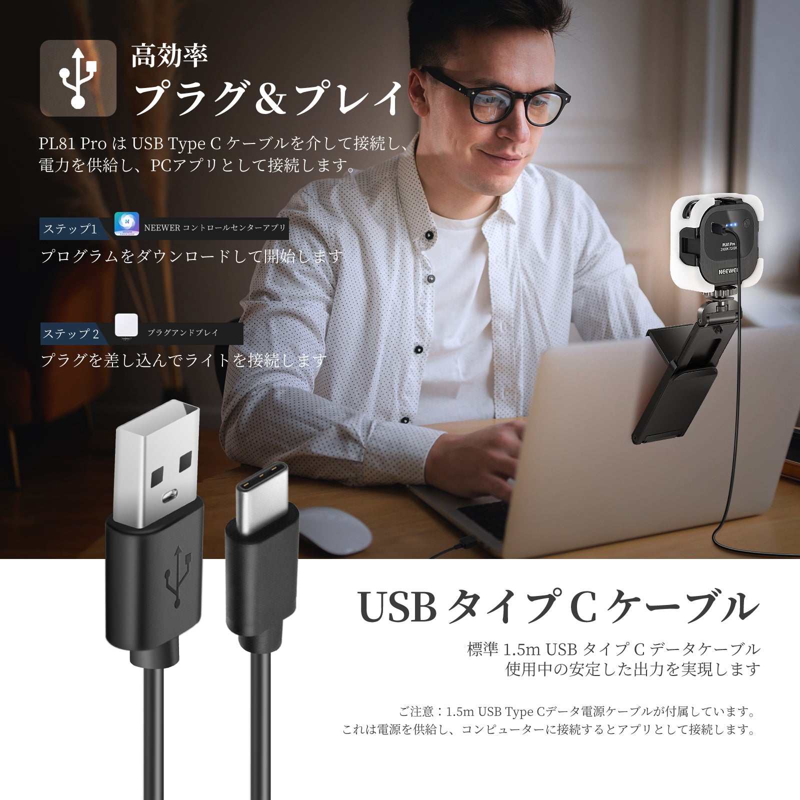 【一日中安全な照明】5V 2A USB 接続で駆動されるこのライトは、付属の5ft (1.5m)USB A - USB Type C ケーブルでコンピューターまたはラップトップの USB A ポートに接続できます。一日中使用しても安全で信頼性の高い動作で安心してください。使用しないときにライトを保管して保護するの収納ポーチが付属しています。