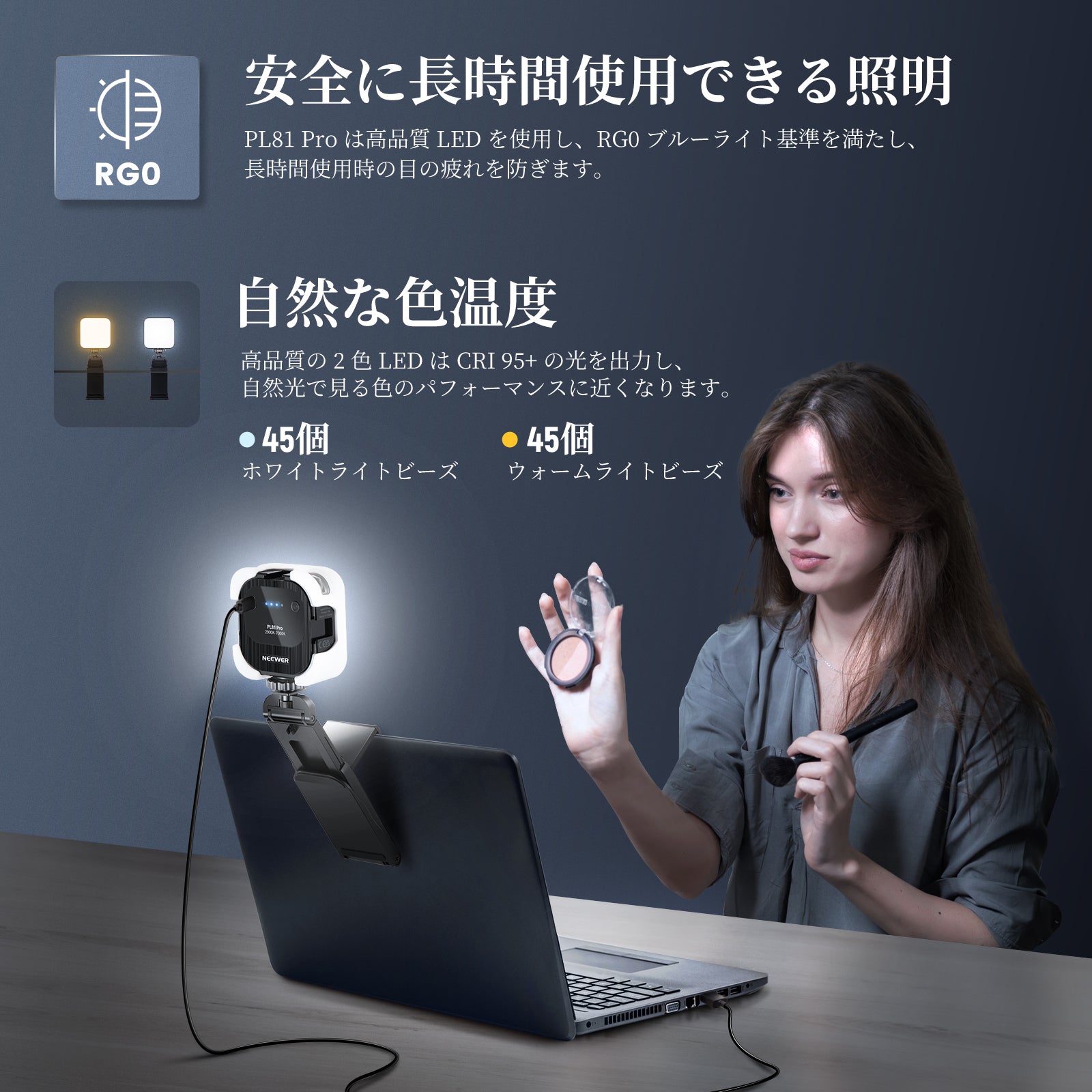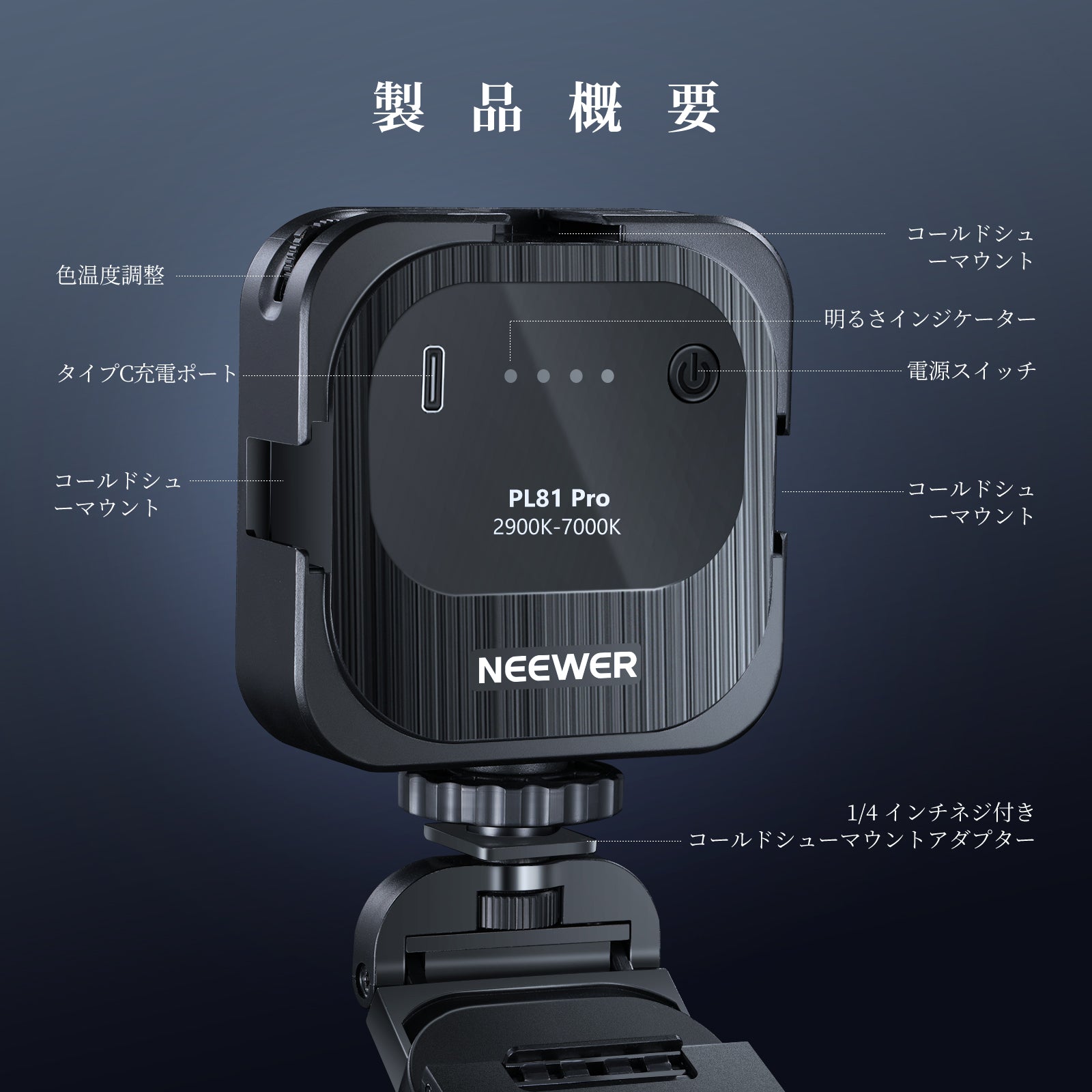 【超高輝度ストリーミングライト】PL81 PROの明るさで、ライブストリーミング、ゲーム、ビデオ Zoom 通話、コンテンツ作成を向上させます。最大照度480lux/0.5mで、他のミニポータブルLED ビデオライトよりもはるかに明るく、比類のない明るさを実現します。0~100%の調光機能と便利な4つの明るさレベルインジケーター (25%、50%、75%、100%) により、照明を完全に制御できます。