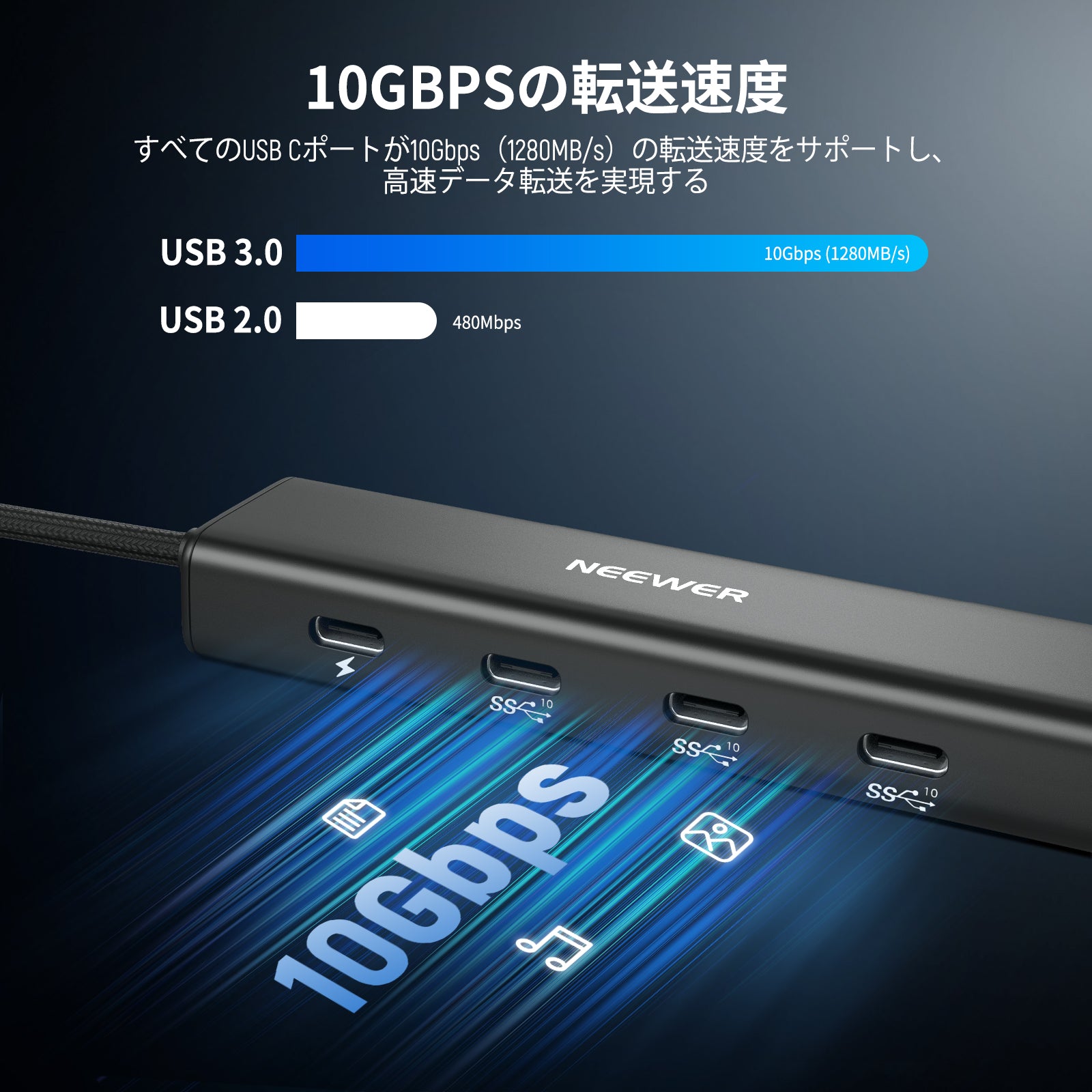 - 【10Gbps 転送速度】スプリッターの4つのUSB Cポートはすべて10Gbps(1280MB/s)の最大データ転送速度に対応しており、大容量ファイルの効率的な転送が可能です。