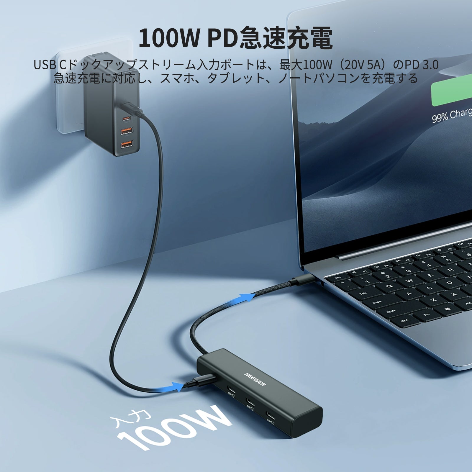 - 【100W PD 急速充電】USB Cドックアップストリーム入力ポートは最大100W(20V 5A)のPD 3.0急速充電に対応し、スマホ、タブレット、ラップトップを充電できます。