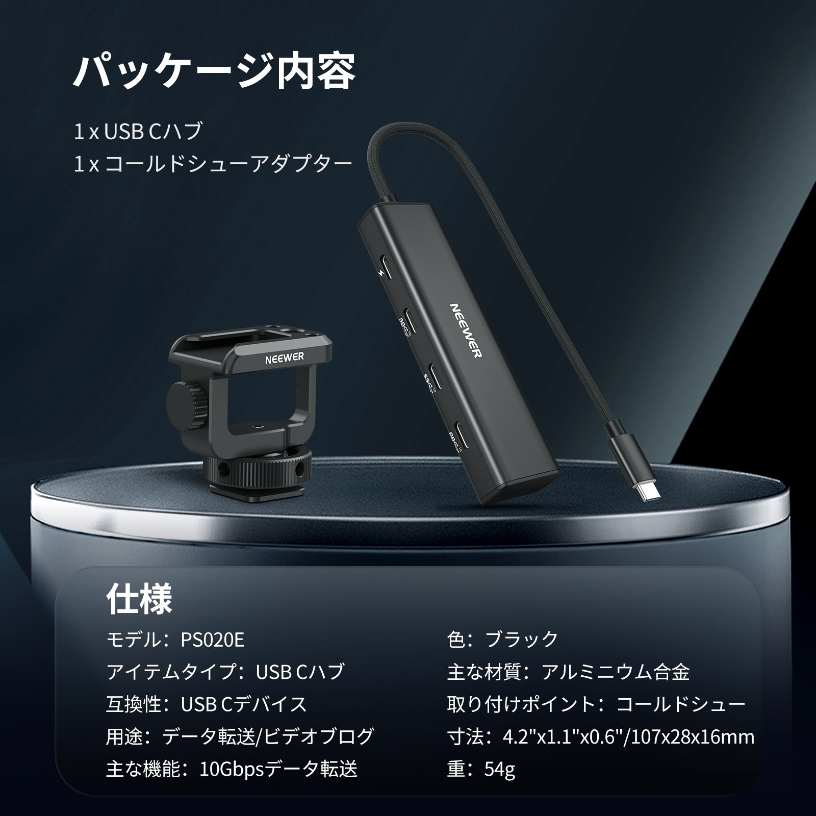 NEEWER PS020E 4 in 1 USB Cハブ コールドシューアダプター付き