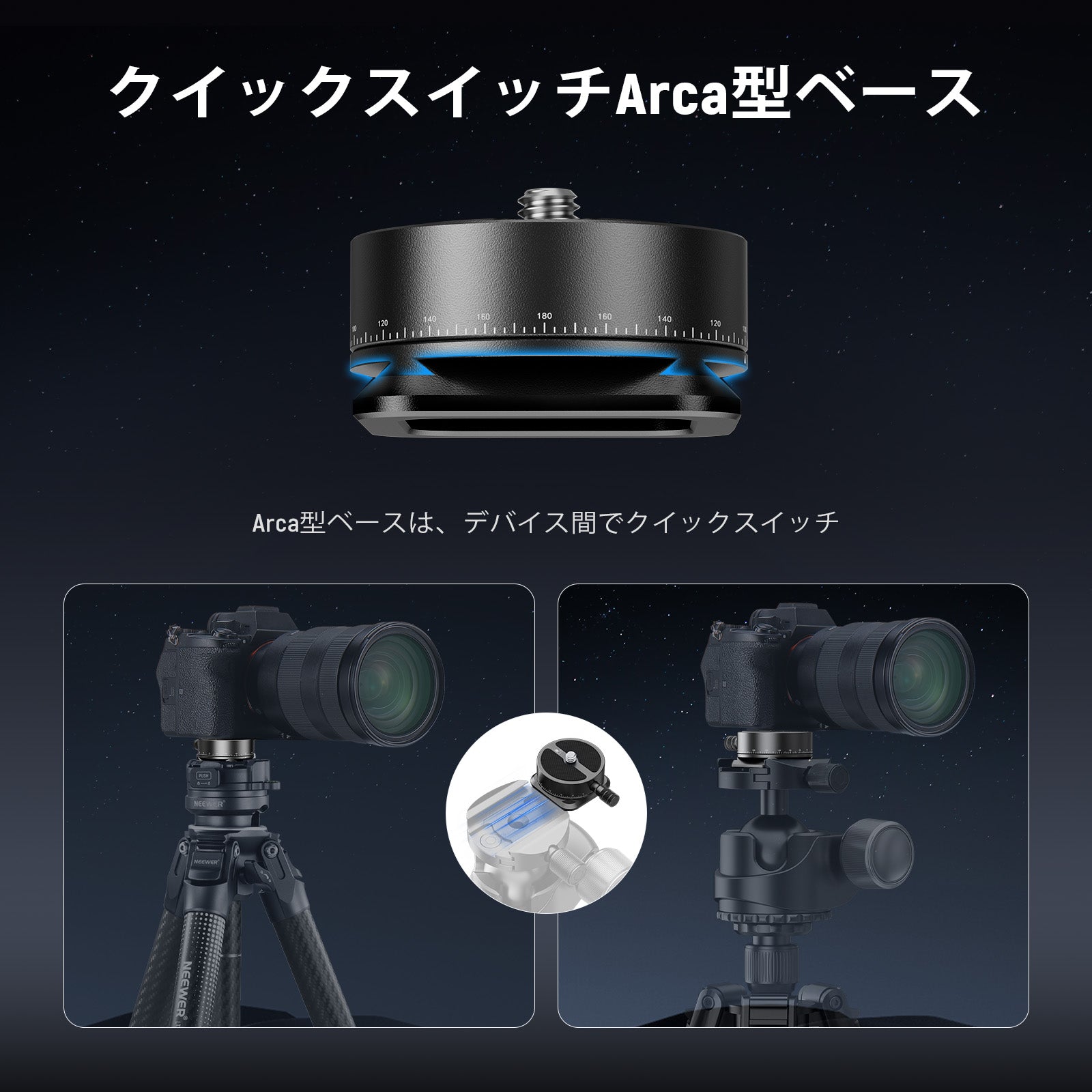 - 【クイックスイッチArca型ベース】パノラマカメラマウントは、Arca型ベースを備え、Arca型クランプベースに簡単にスライドでき、。三脚、一脚、スライダー、スタビライザーなど、同じマウントシステムで素早く切り替えられます。