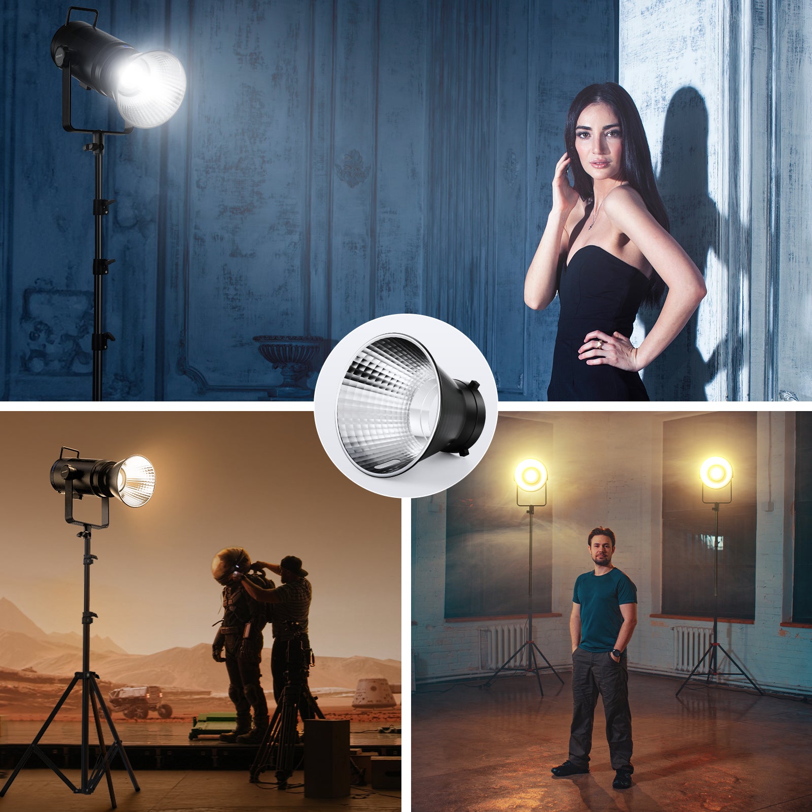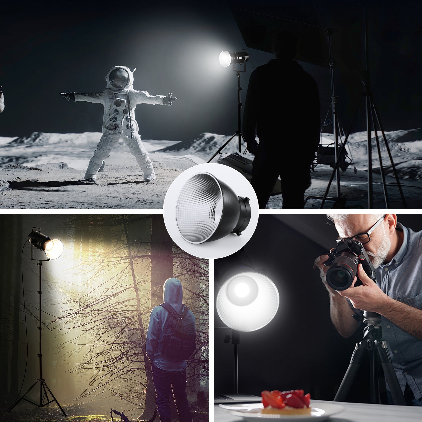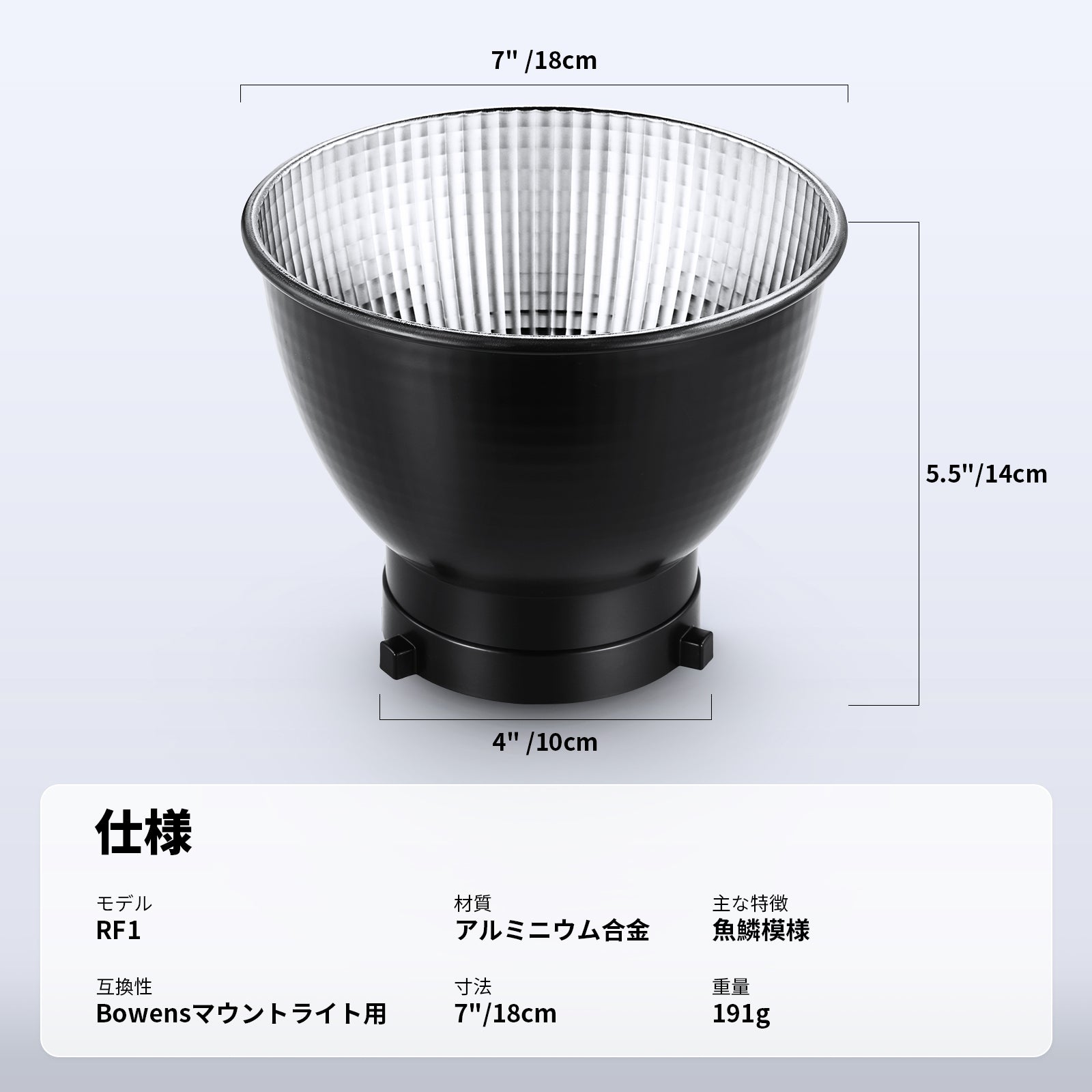 - 【内部魚鱗模様】25°反射角付き標準リフレクターは魚鱗模様を採用し、光の形状を均一に広げ、被写体への厳しい影を最小限に抑えます。