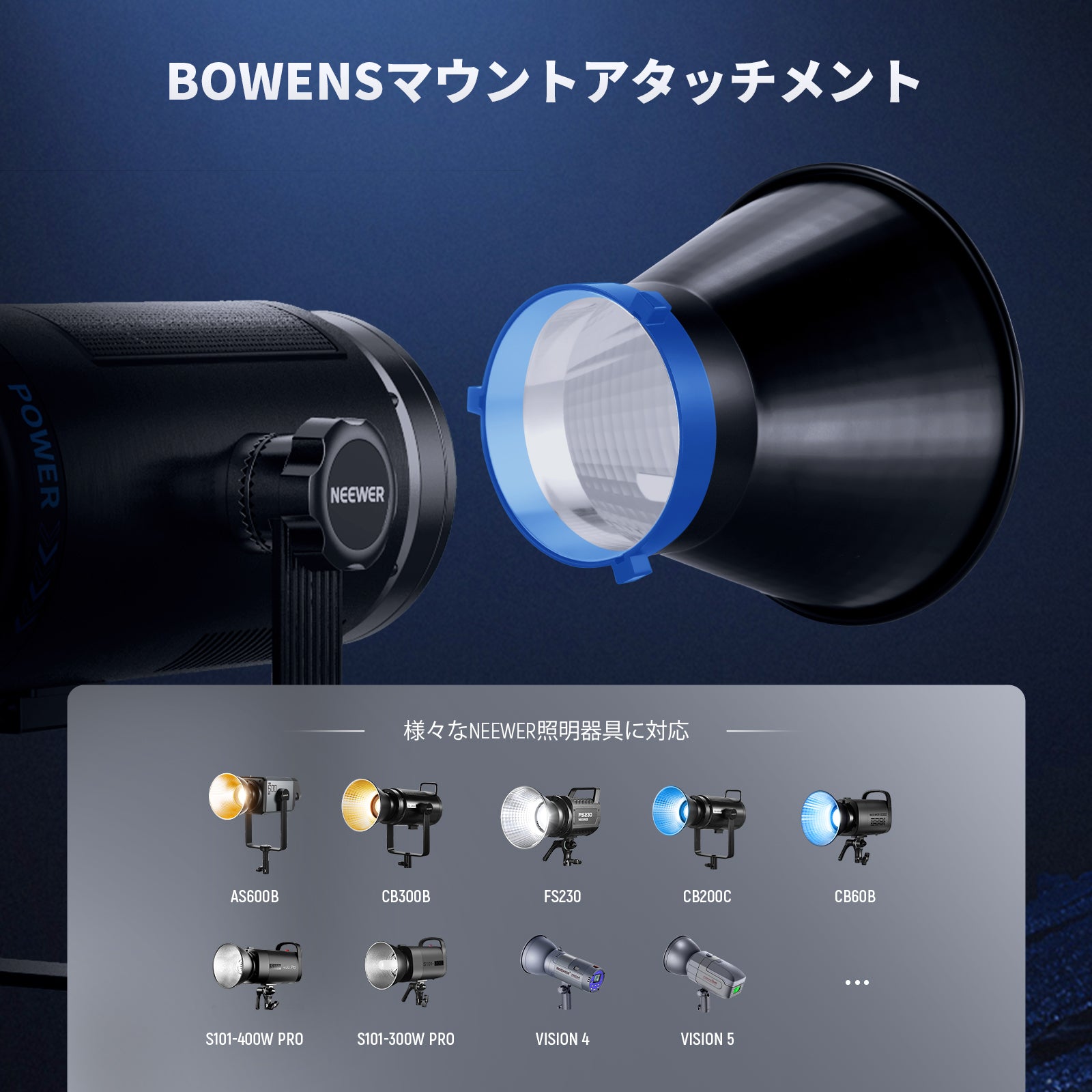 - 【汎用Bowensマウント】NEEWER CB60/CB60B/CB60RGB/CB100/CB100B/CB150/CB200B/CB300B/ FS150/FS150B/FS230/FS230B LEDビデオライト Q4/Vision 4/Vision 5/S101-400 Pro/S101-300W Proスタジオモノライトフラッシュに適しています。コンパチブル Godox、コンパチブル Aputure。