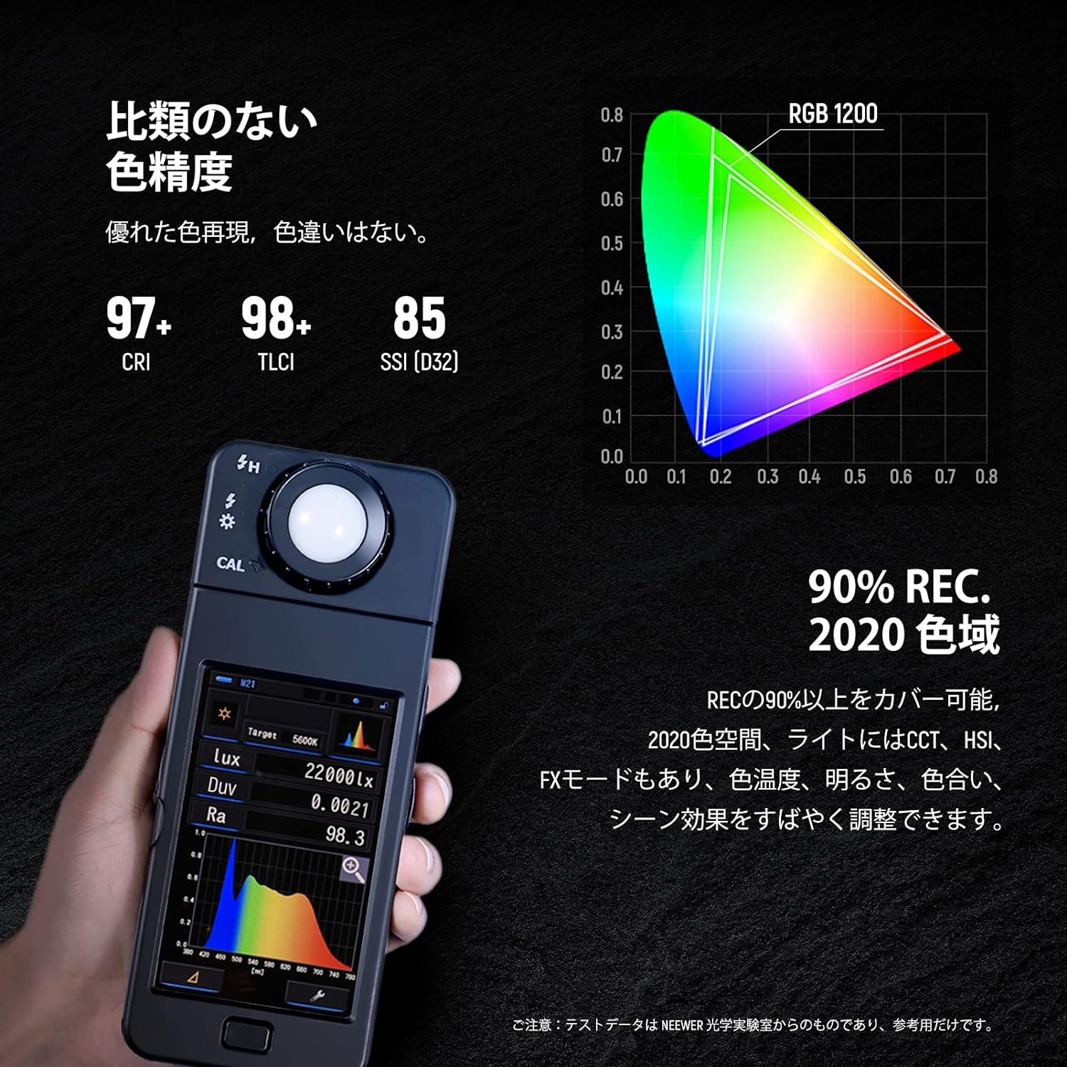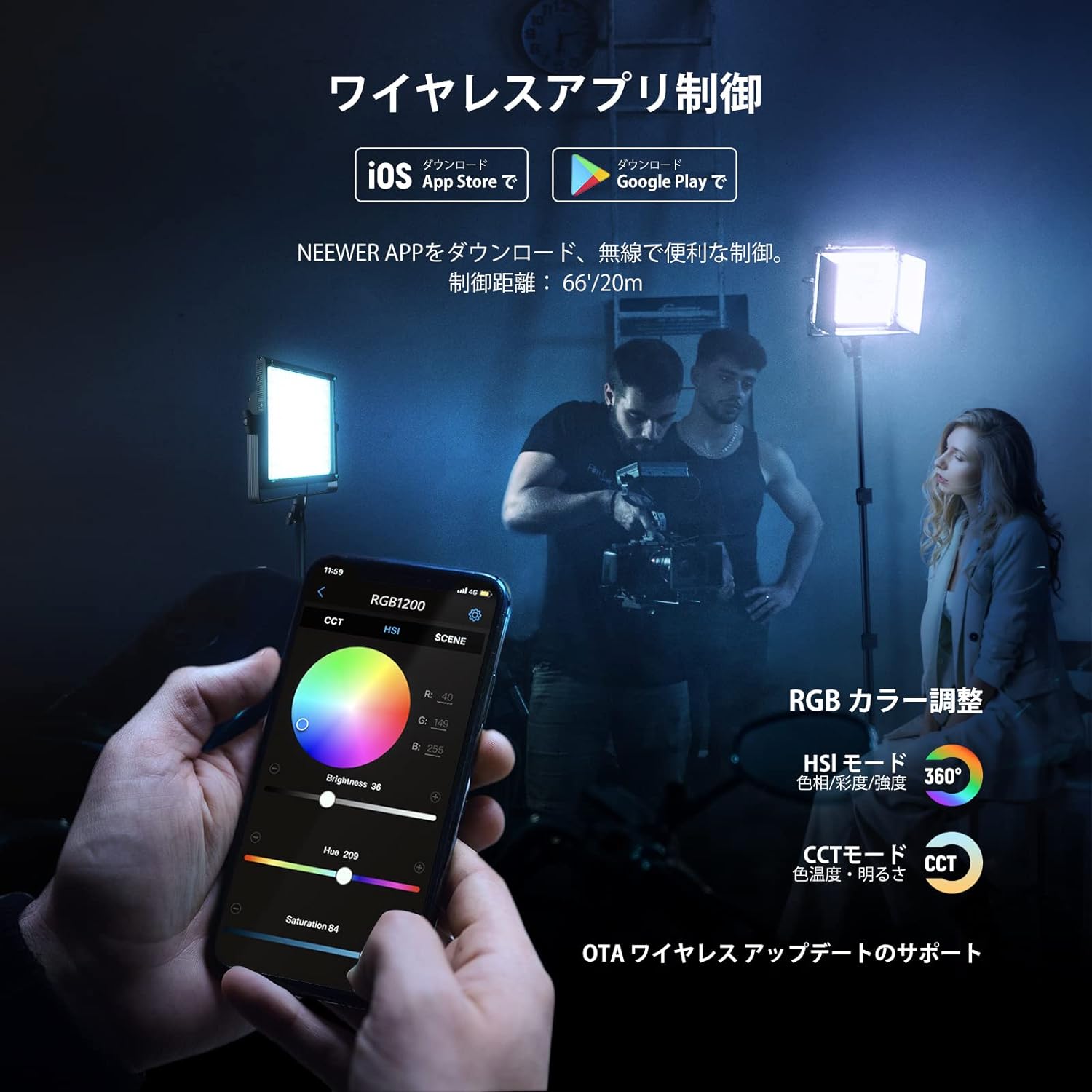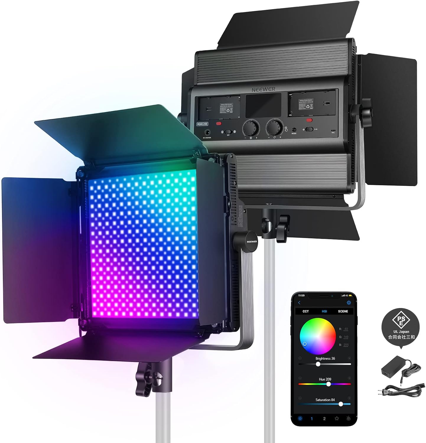 - 【正確な調光機能を備えた汎用性の高い60W RGBライト】60Wの出力と480個LEDビーズを備えたRGBライトは、最大22000lux0.5m、CRI97+ TLCI98+優れた照明を提供します。 NEEWERリニアPWM調光技術により、明るさを最小輝度制限を僅か1% (明るさと電力が真の1%に達す) から100%まで突破、色温度2500K~8500K、360° フルRGB 、スムーズで正確な調整を保証します。