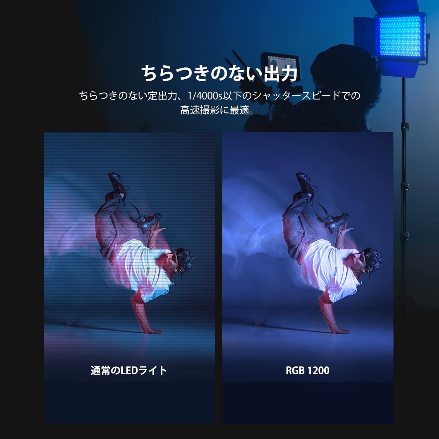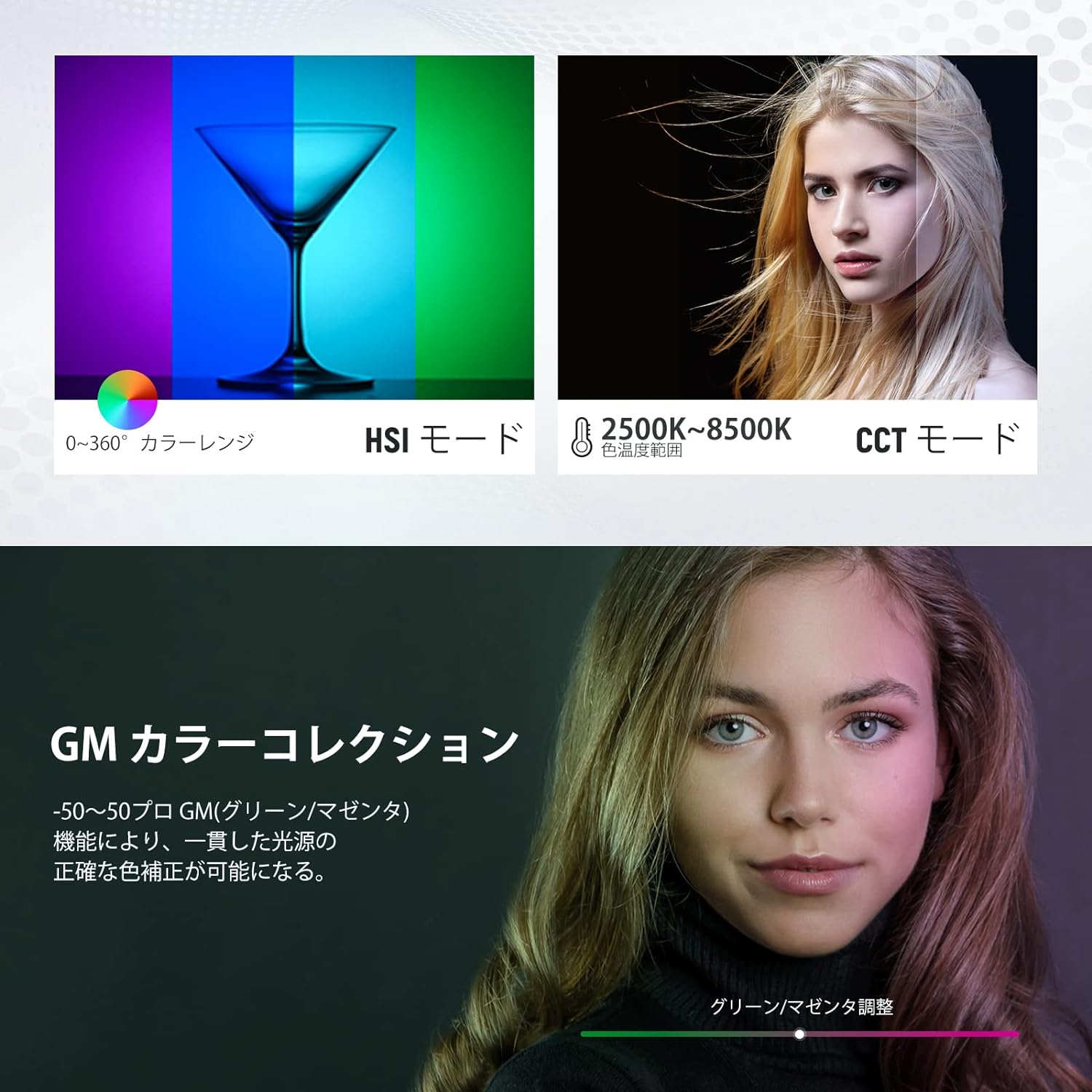 - 【18種照明シーン&音楽同期をサポート】18種照明シーンにアップグレードされました。そのうち 17 はプリセットをサポートし、ビデオ作品に人目を引く要素を追加します。 注目の音楽同期効果は、ピッチと音量に基づいてカラフルでダイナミックな方法でスマートライトを音楽に同期させることができます。グリーンマゼンタ調整(GM補正)に対応。色ずれやちらつきのない定出力、1/4000以下のシャッタースピードでの高速撮影に最適。