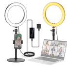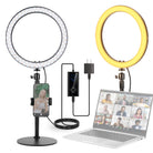 - 【調整可能なデスクスタンド&360°照明角度】自撮りサークルハローリングライトキットには、11"-18"/29-45cmのデスクトップスタンドと360°ボールヘッドが含まれています。希望の高さを簡単に調整し、回転させて最適な照明角度を見つけます。ストリーマー、化粧アーティスト、デスクワーク、ノートパソコンのウェブカメラでのビデオ会議、ビデオの撮影など、調整可能なセットアップは必要な柔軟性を提供します。
