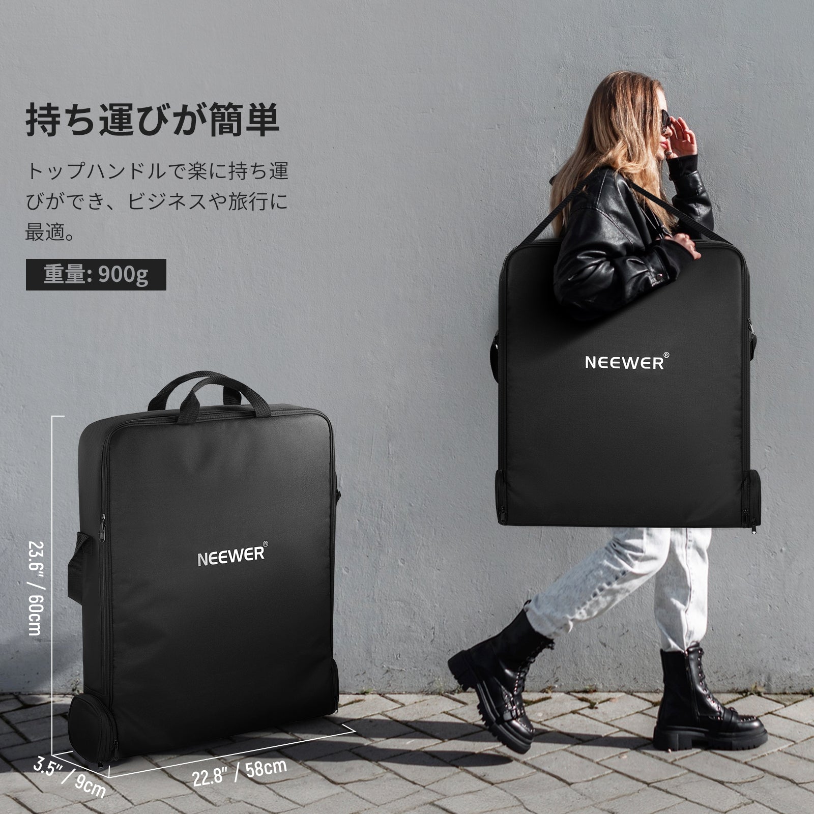 【18インチリングライトとスタンド用キャリングバッグ】60 x 58cmの収納バッグには、直径18インチまでのリングライトのほか、ボールヘッド、バッテリー、アダプター、ケーブル、フィルター、三脚などのアクセサリーも収納でき、外出先でも安全に整理整頓できます。 双方向ジッパーによりバッグの開閉が簡単になります。
