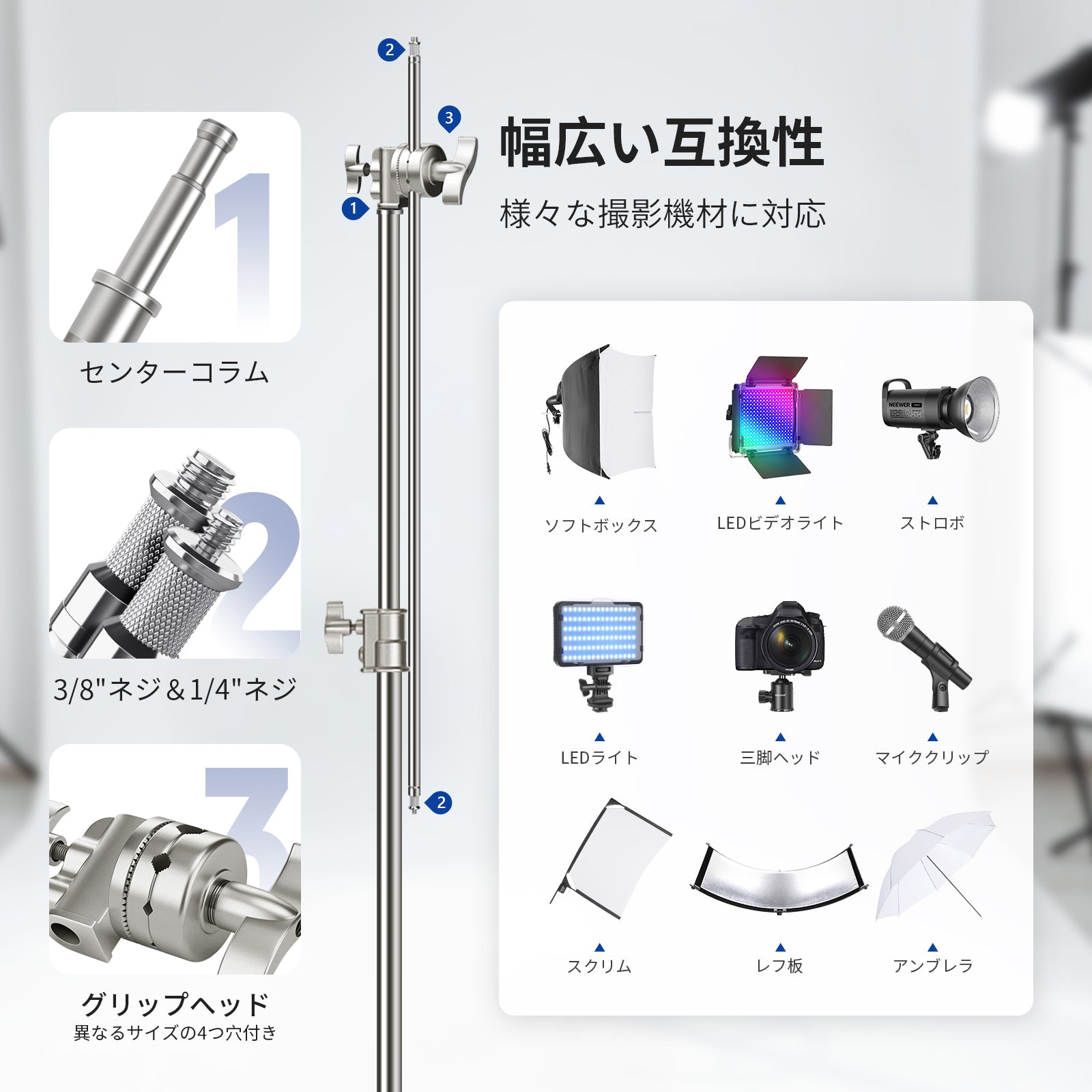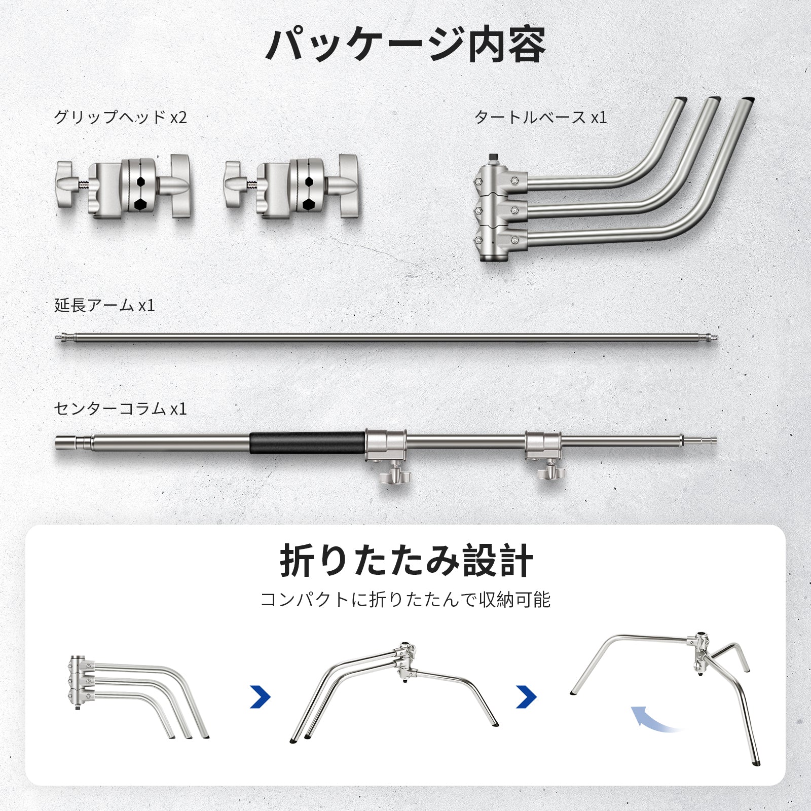 - 【100%重型ステンレスCスタンド】頑丈なステンレス鋼で設計されたブームアーム付きNEEWER Cスタンドはスタジオモノライト、LEDビデオライト、ソフトボックス、リフレクター、写真用アンブレラ、その他の機材用の耐荷重マウントソリューションです。