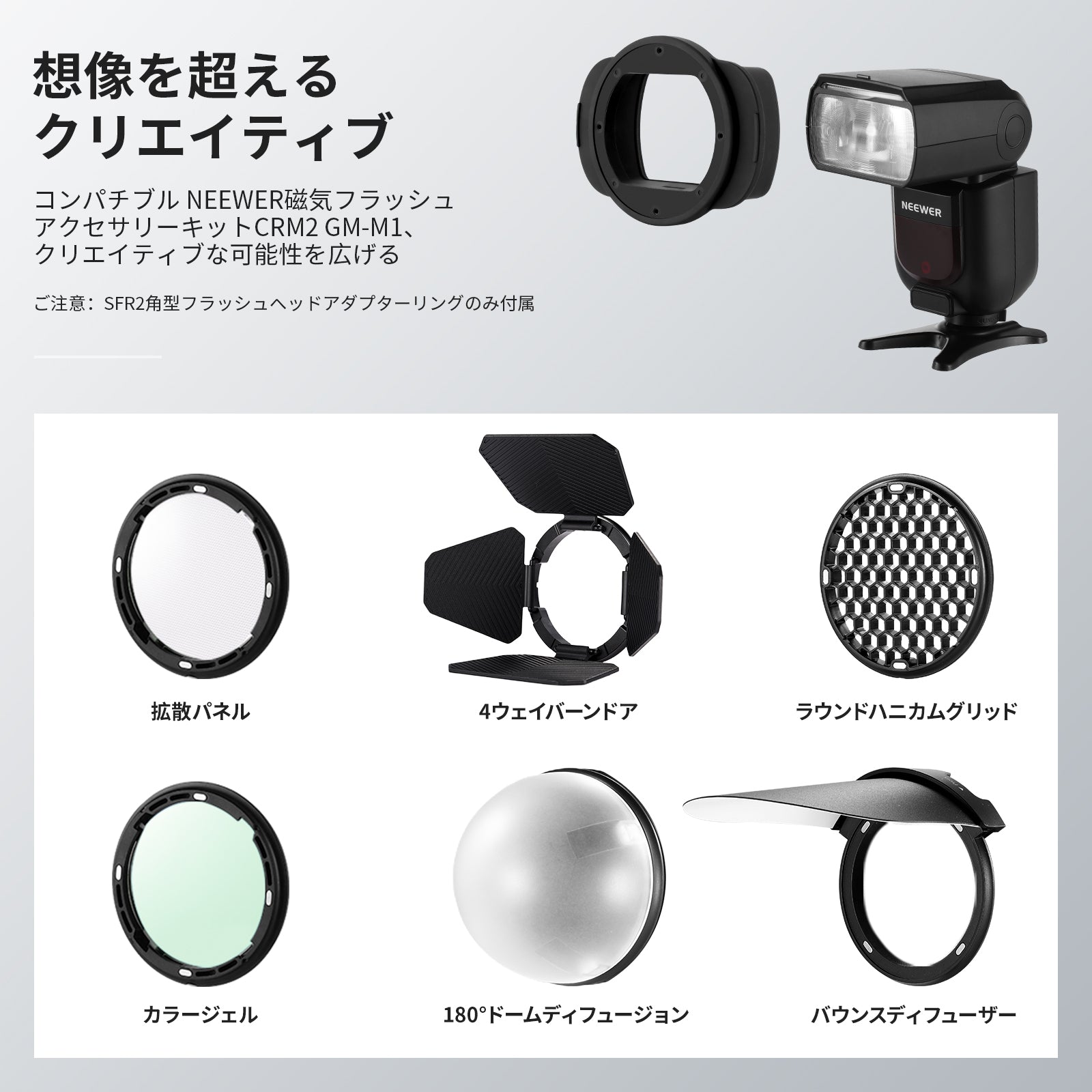 - 【丸型フラッシュアクセサリー用】カラージェル、バーンドア、ハニカムグリッド、拡散パネル、M12 ドームディフューザーなどを備えたNEEWER CRM2とGM-M1 磁気ラウンドフラッシュアクセサリーキットなどのラウンドフラッシュアクセサリーに適しています。また、コンパチブル Godox V860III TT685IIスクエアフラッシュAK-R1アクセサリーキット。