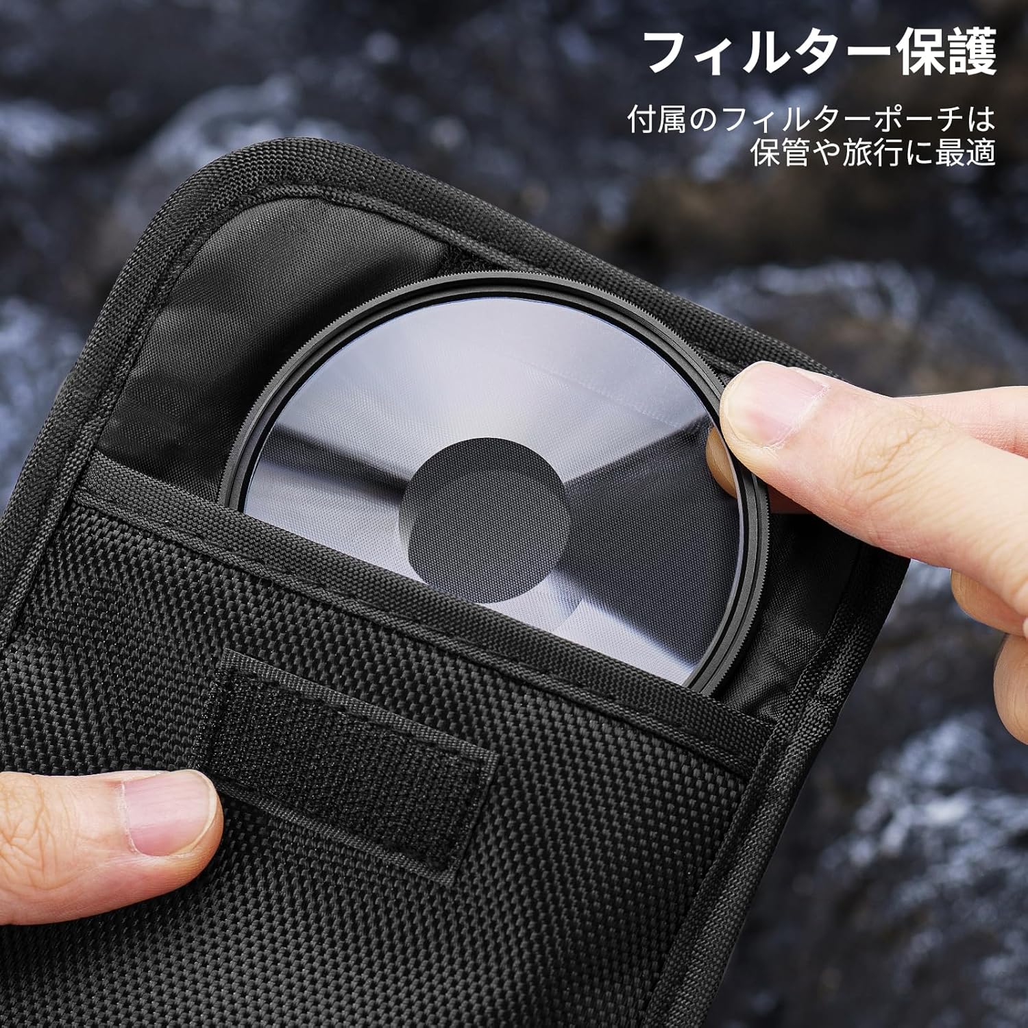 このフィルターは同サイズのレンズに対応しています。アダプターリングを使用してレンズに接続することも可能です。購入前にスレッドサイズを必ずご確認ください。スレッドサイズはレンズ前面または側面に「ø」(直径)マークとともに記載されています。