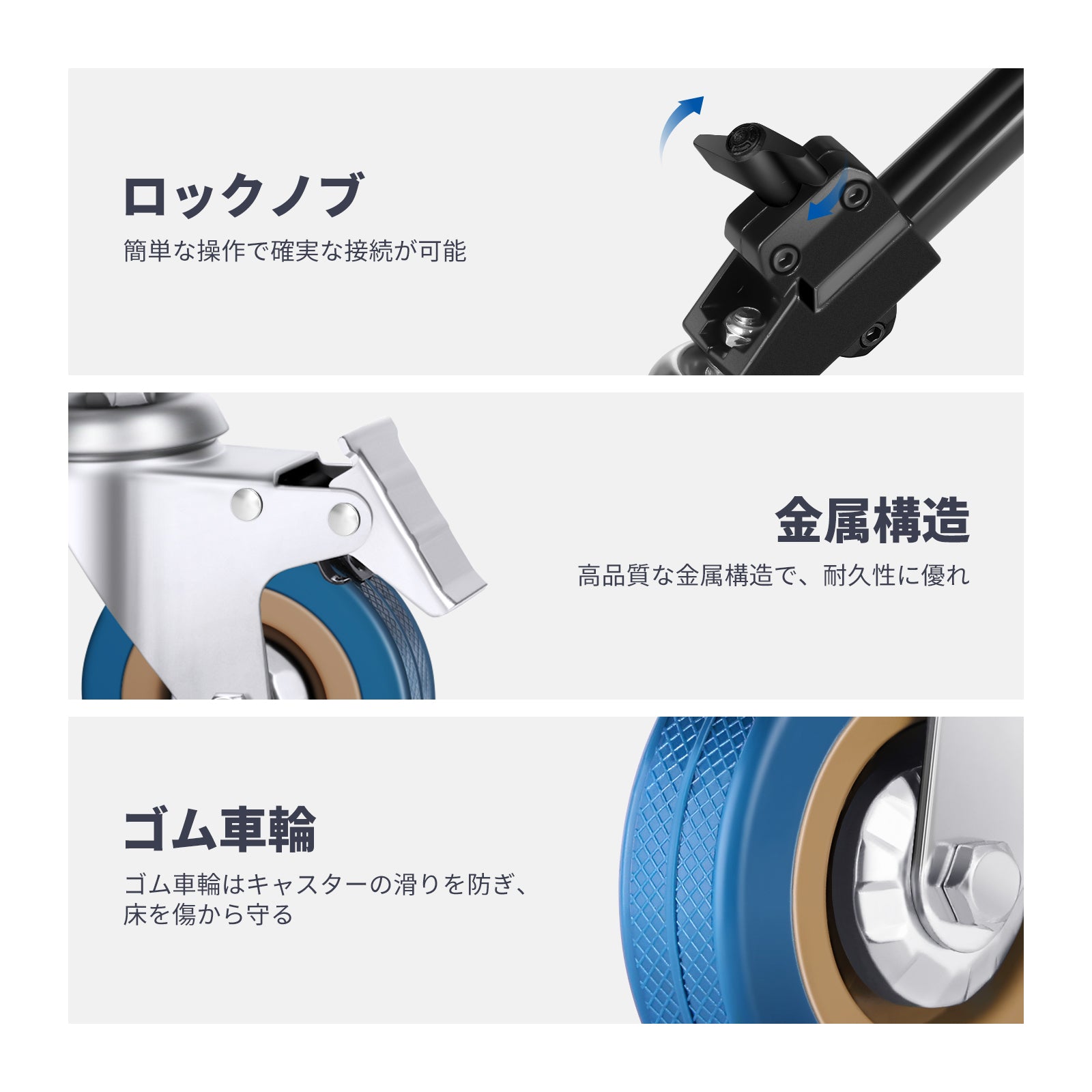 - 【360°回転キャスター】<br>360°回転キャスターは不可欠な写真撮影アクセサリです。移動性と安定性に優れ、スタンドをスムーズに回転させ、簡単に方向を変え、必要な場所に正確に配置できます。