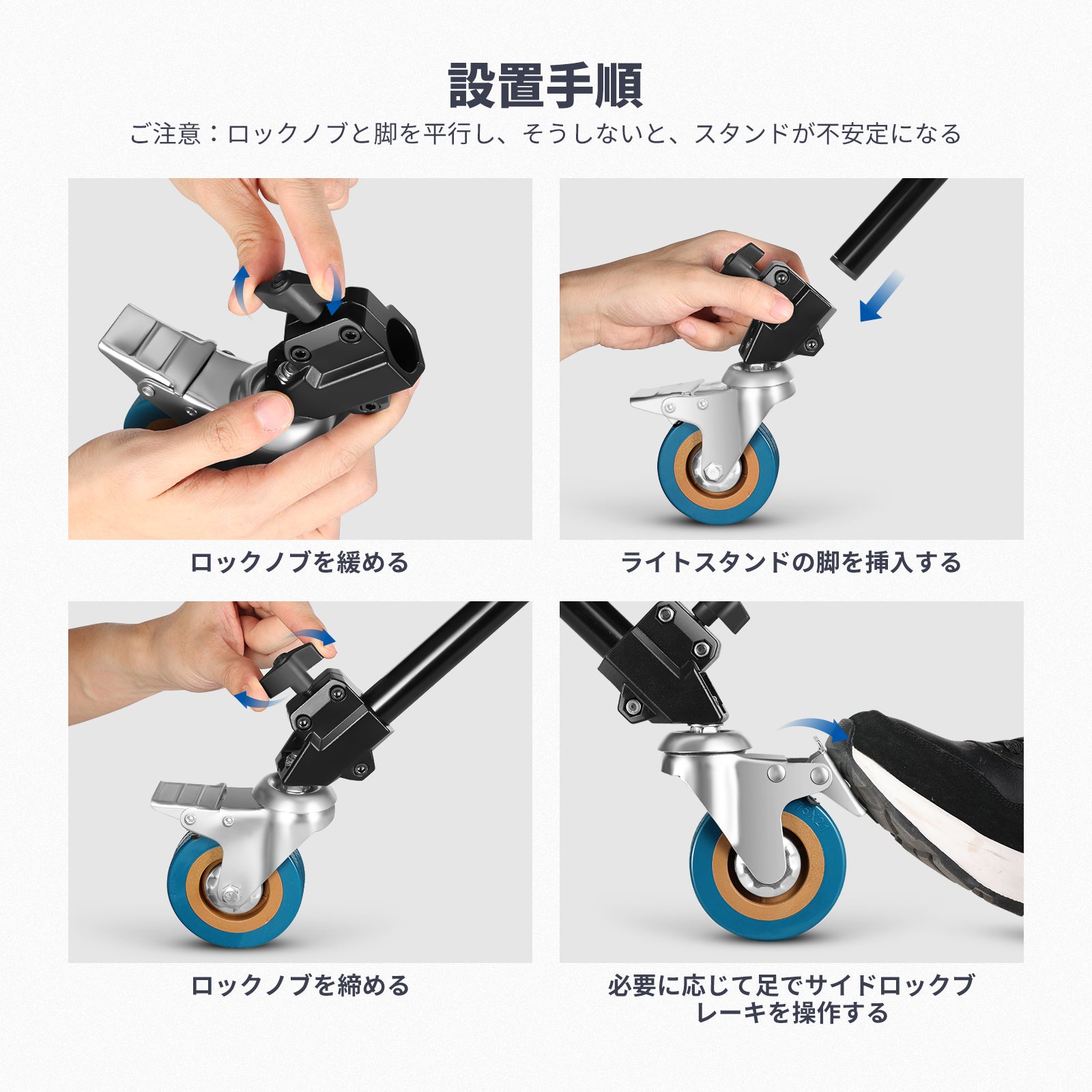 - 【Φ0.9"/22mmスタンド脚専用設計】NEEWER ST001ライトスタンドホイールは、Φ0.9"/22mm三脚にのみ適しています。各ホイールにはロックノブがあり、安定した固定が可能です。