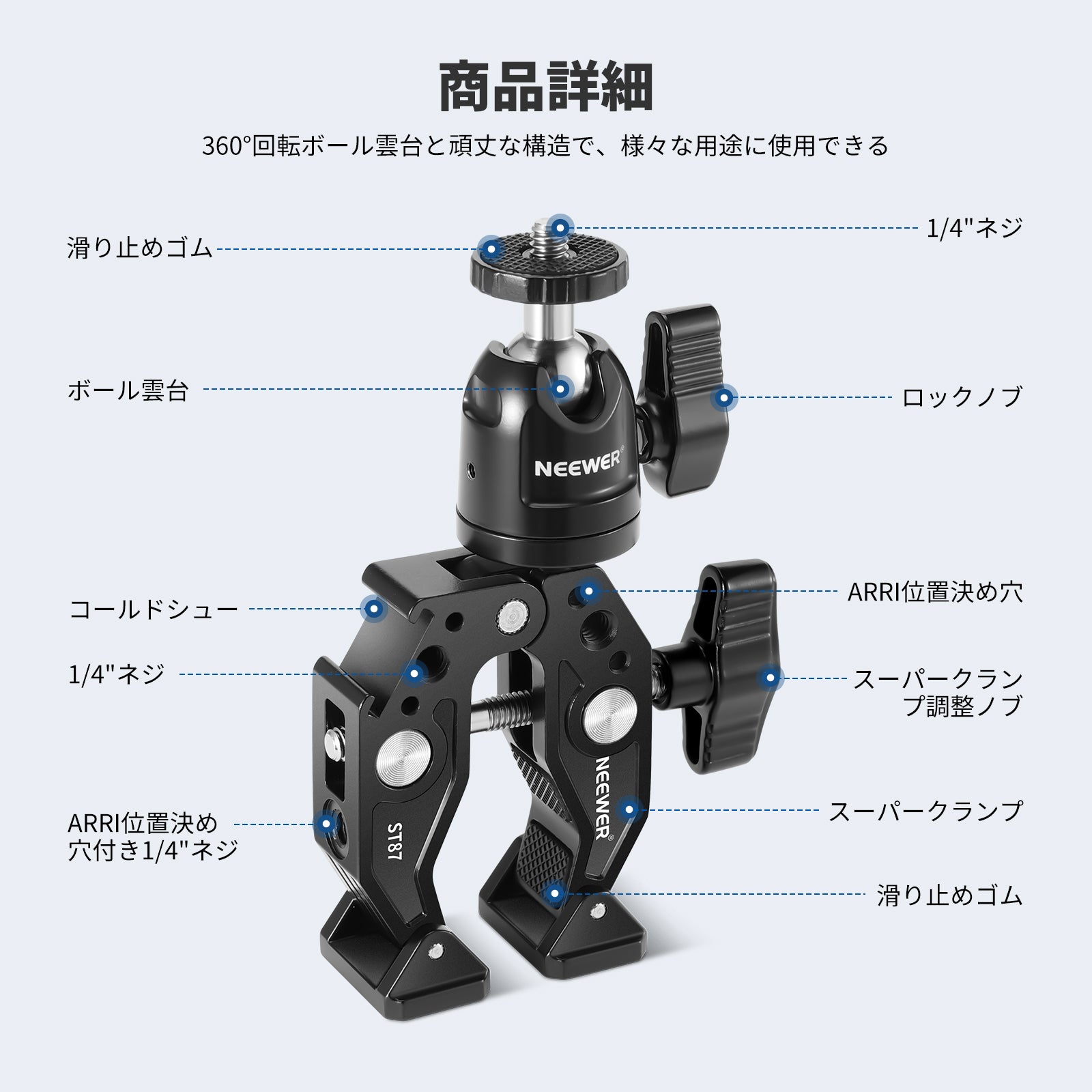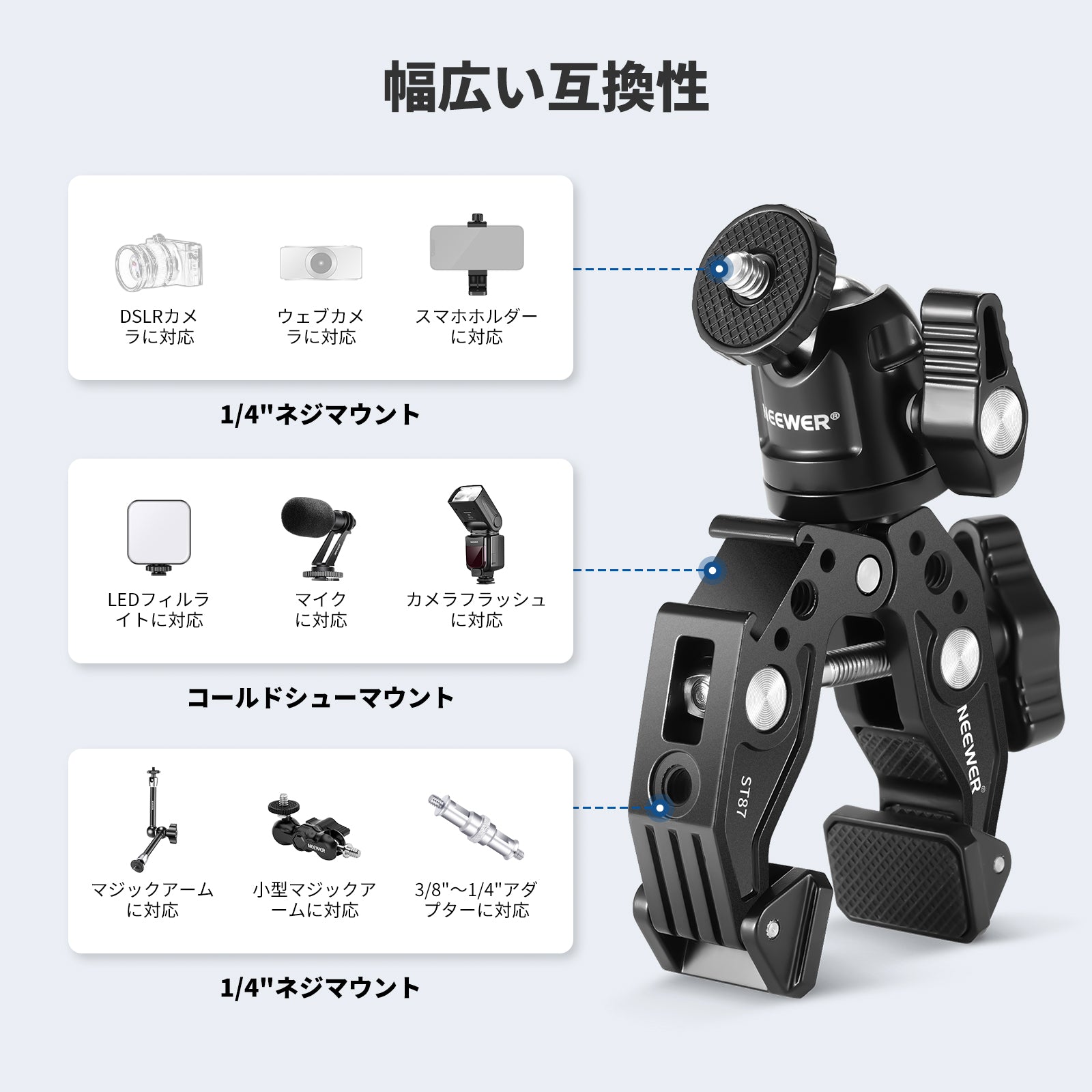 - 【十分なアクセサリーマウント】複数の1/4"ネジとコールドシューはST25C関節式アーム、CM14 PROマイク、PL81 LEDフィルライトなどのNEEWERアクセサリーを取り付け、より良いコンテンツ制作をサポートします。